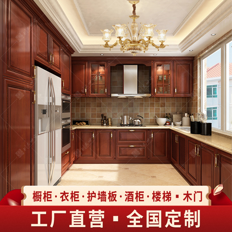 Pure solid wood cabinets, American style whole house customized furniture, European style French style new Chinese style villa, overall kitchen decoration, Chengdu