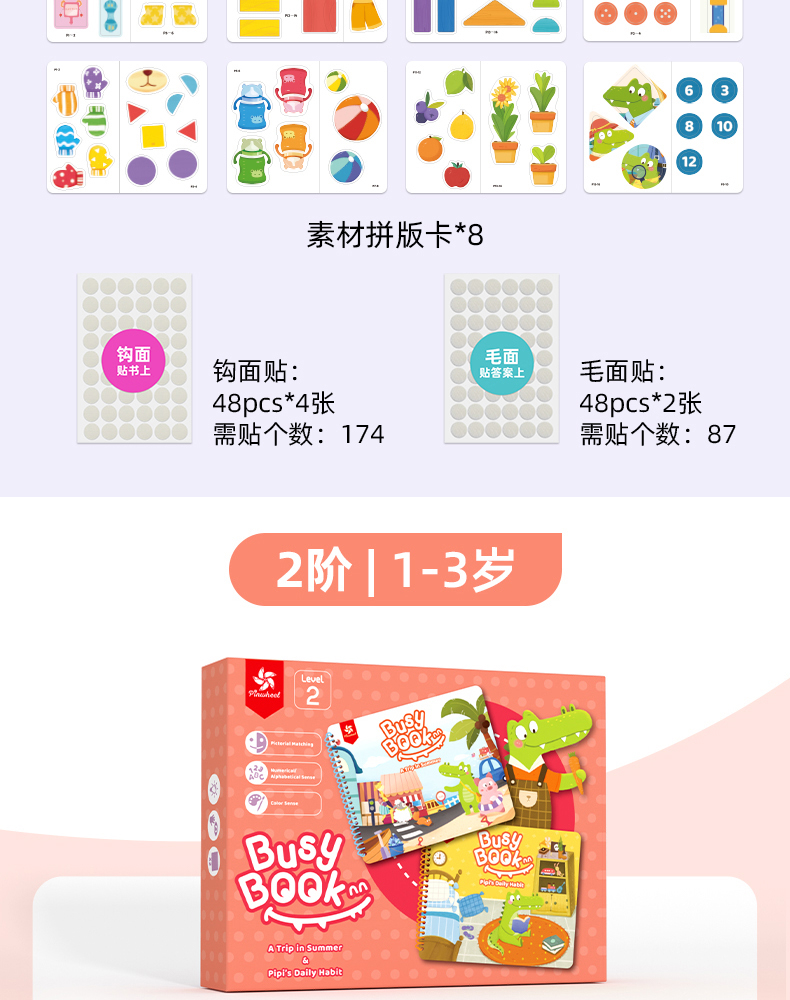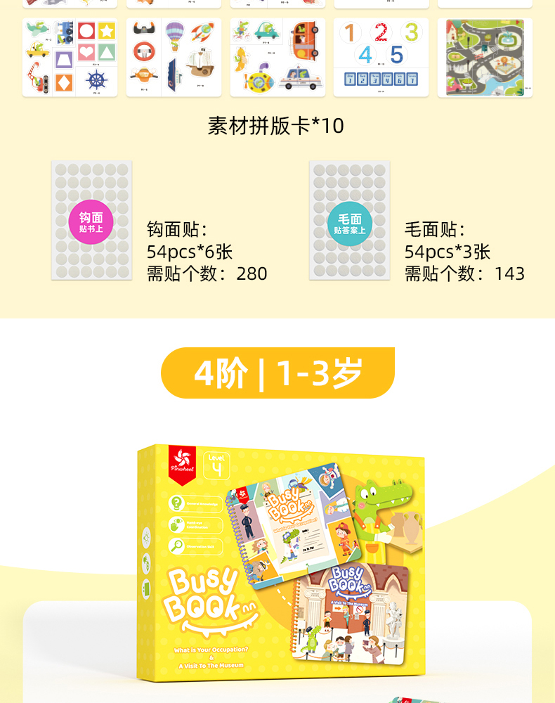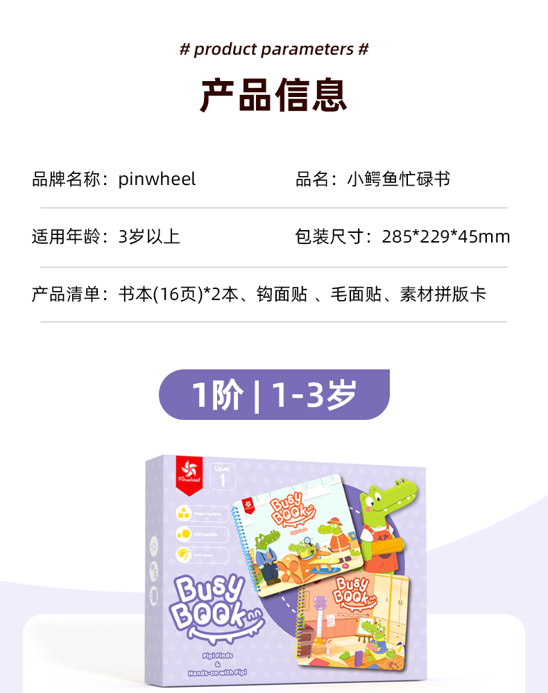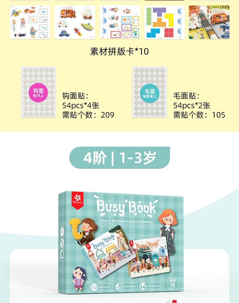 忙碌书1阶【动手实践+找一找丨建议1.5岁+】 忙碌书2阶【夏日之旅+生活习惯丨建议2岁+】 忙碌书3阶【小鳄鱼的一天+交通工具丨建议2.5岁+】 忙碌书4阶【你的职业是什么+博物馆丨建议3岁+】 忙碌书4阶-【幼儿园的一天+家庭成员丨建议3岁+】 忙碌书5阶【运动会+去超市丨建议3.5岁+】 忙碌书6阶【医院体检+游乐园丨建议4岁+】 忙碌书7阶【遨游太空+环球旅行丨建议4.5岁+】 忙碌书【1+2阶段丨建议1.5-2岁+】 忙碌书【2+3阶段丨建议2-2.5岁+】 忙碌书【3+4阶段丨建议2.5-3岁+】 忙碌书【4+5阶段丨建议3-3.5岁+】 忙碌书【5+6阶段丨建议3.5-4岁+】 忙碌书【6+7阶段丨建议4-4.5岁+】 忙碌书【1到7阶段丨建议1.5-4.5岁+】