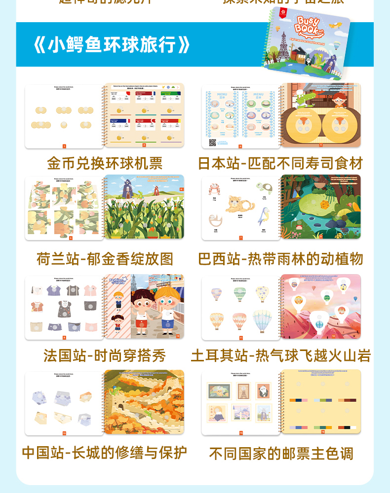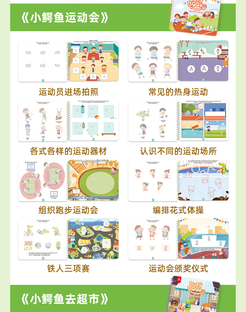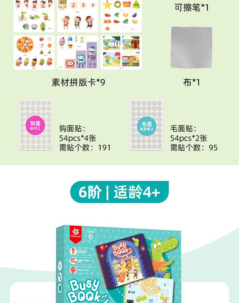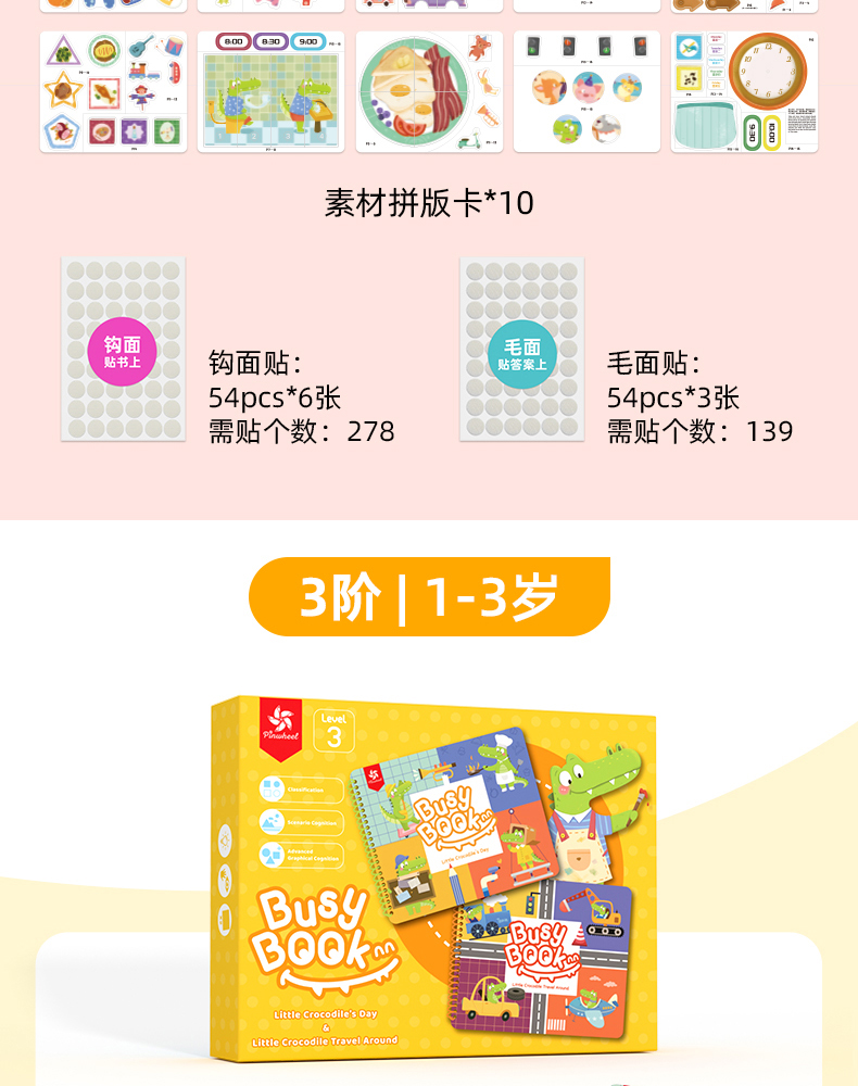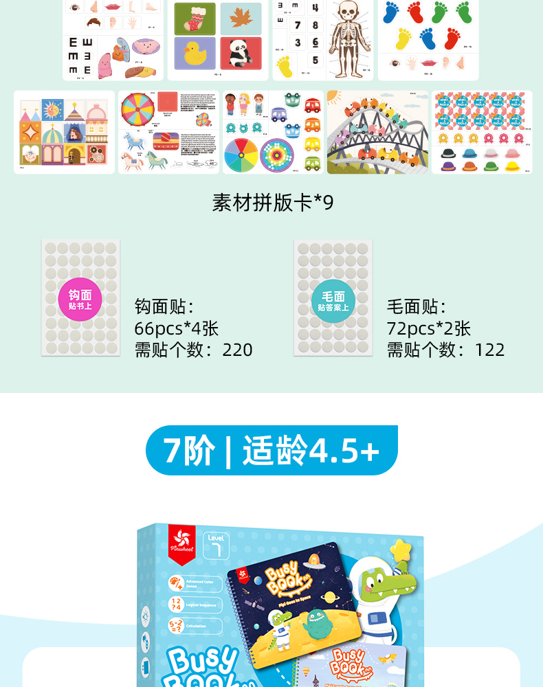 忙碌书1阶【动手实践+找一找丨建议1.5岁+】 忙碌书2阶【夏日之旅+生活习惯丨建议2岁+】 忙碌书3阶【小鳄鱼的一天+交通工具丨建议2.5岁+】 忙碌书4阶【你的职业是什么+博物馆丨建议3岁+】 忙碌书4阶-【幼儿园的一天+家庭成员丨建议3岁+】 忙碌书5阶【运动会+去超市丨建议3.5岁+】 忙碌书6阶【医院体检+游乐园丨建议4岁+】 忙碌书7阶【遨游太空+环球旅行丨建议4.5岁+】 忙碌书【1+2阶段丨建议1.5-2岁+】 忙碌书【2+3阶段丨建议2-2.5岁+】 忙碌书【3+4阶段丨建议2.5-3岁+】 忙碌书【4+5阶段丨建议3-3.5岁+】 忙碌书【5+6阶段丨建议3.5-4岁+】 忙碌书【6+7阶段丨建议4-4.5岁+】 忙碌书【1到7阶段丨建议1.5-4.5岁+】