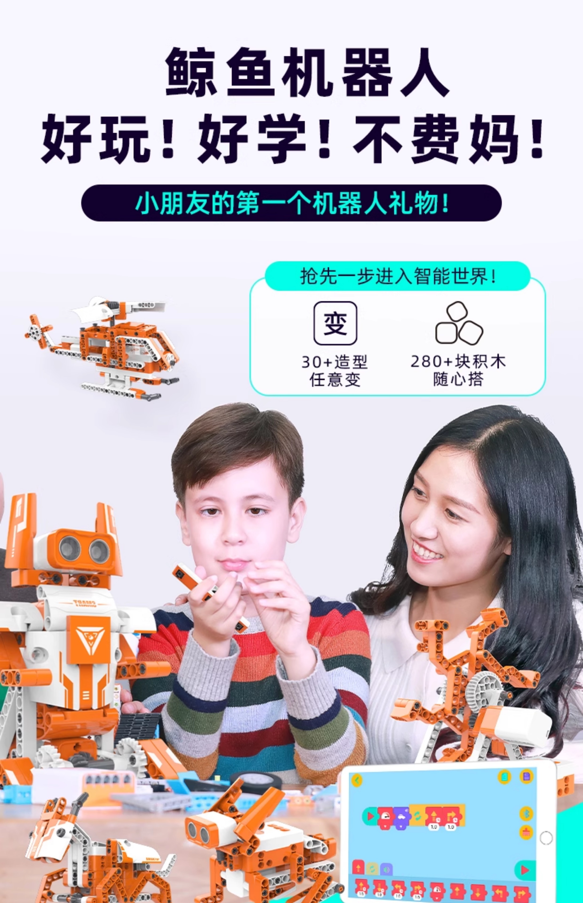 Whale Robot Graphic Programmable Children's Puzzle Toy Electric Assembly Building Blocks Female Boy Birthday Gift Smart Intelligent Education Robot Car