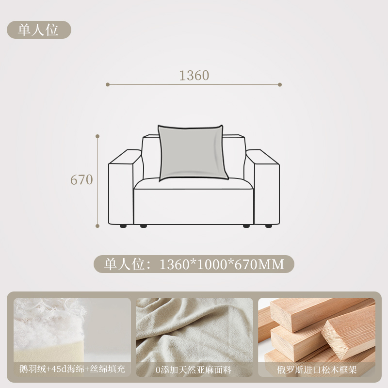 Wabi Sabi Wind Cotton and Hemp Fabric Sofa Tofu Blocks Can be Detached and Washed Living Room Small House Three Person Direct Row Homestay Breeze Sofa