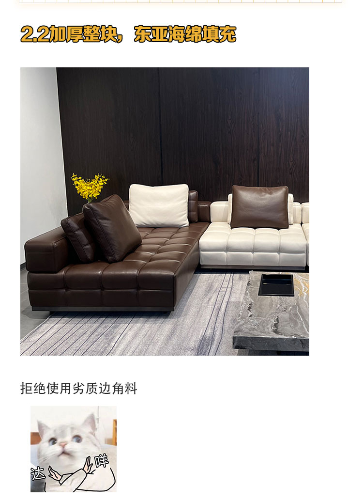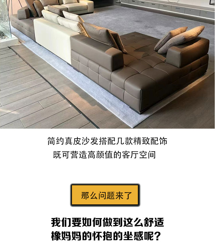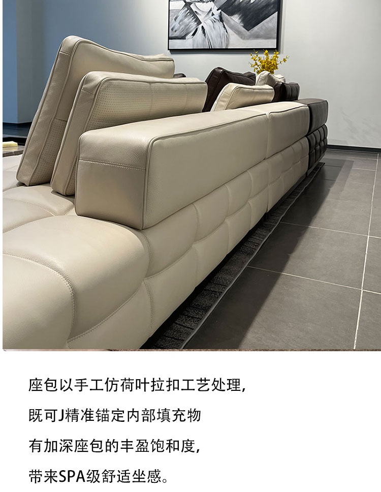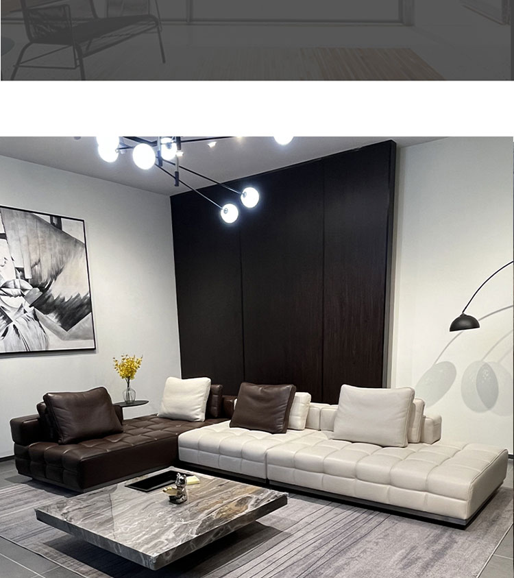 High end Lawrence full leather sofa, Italian minimalist villa, large living room, large flat floor module, straight row furniture