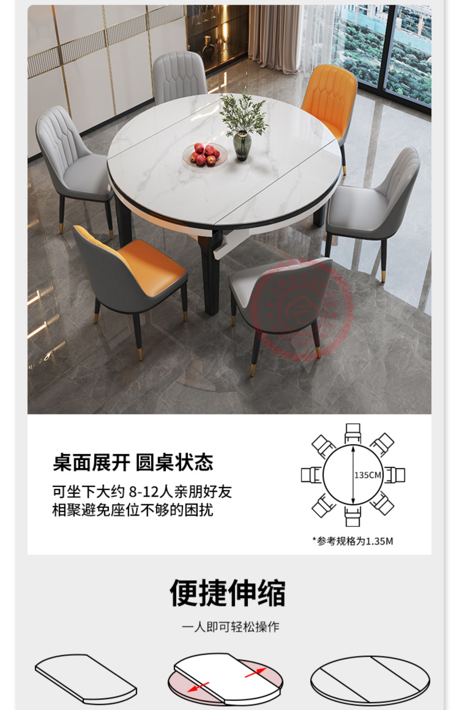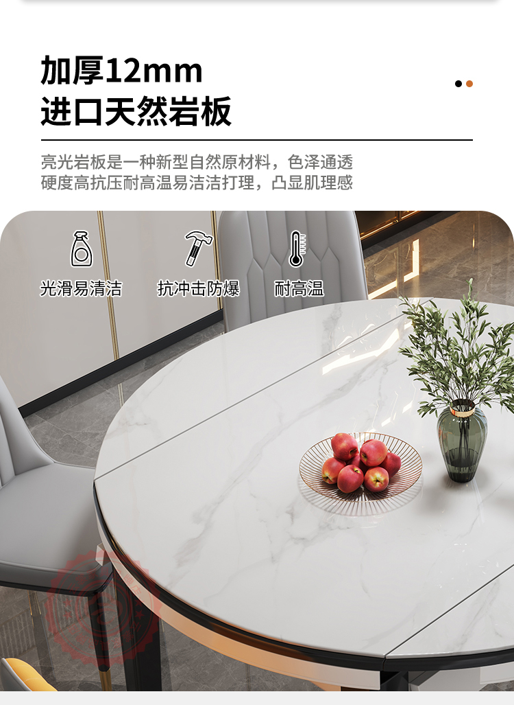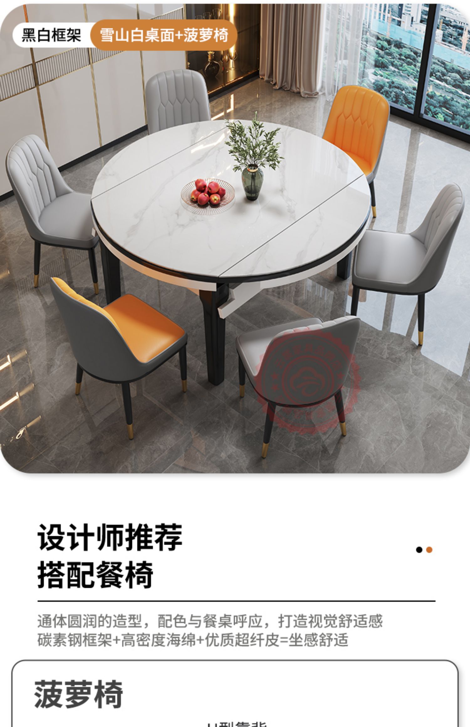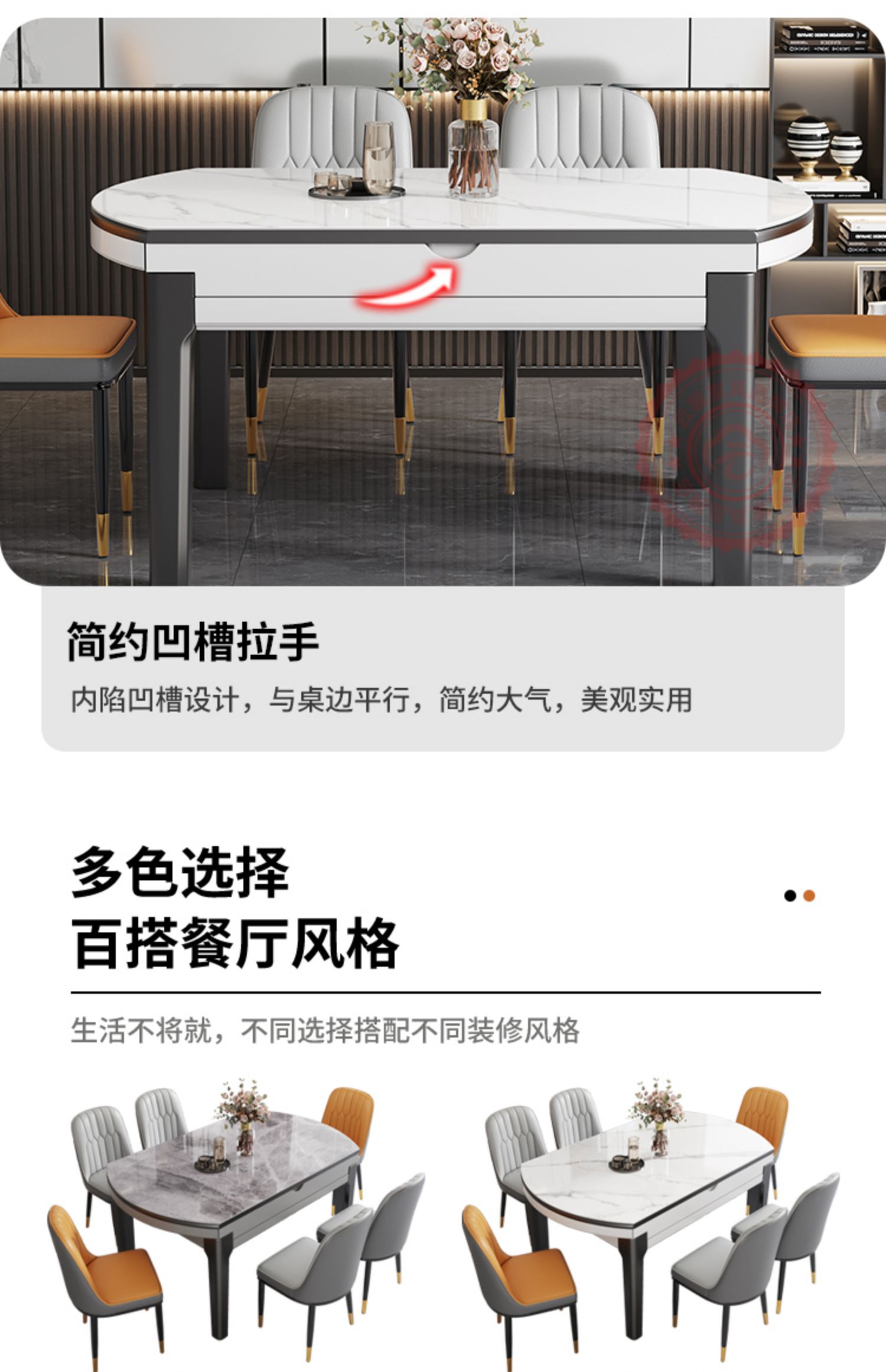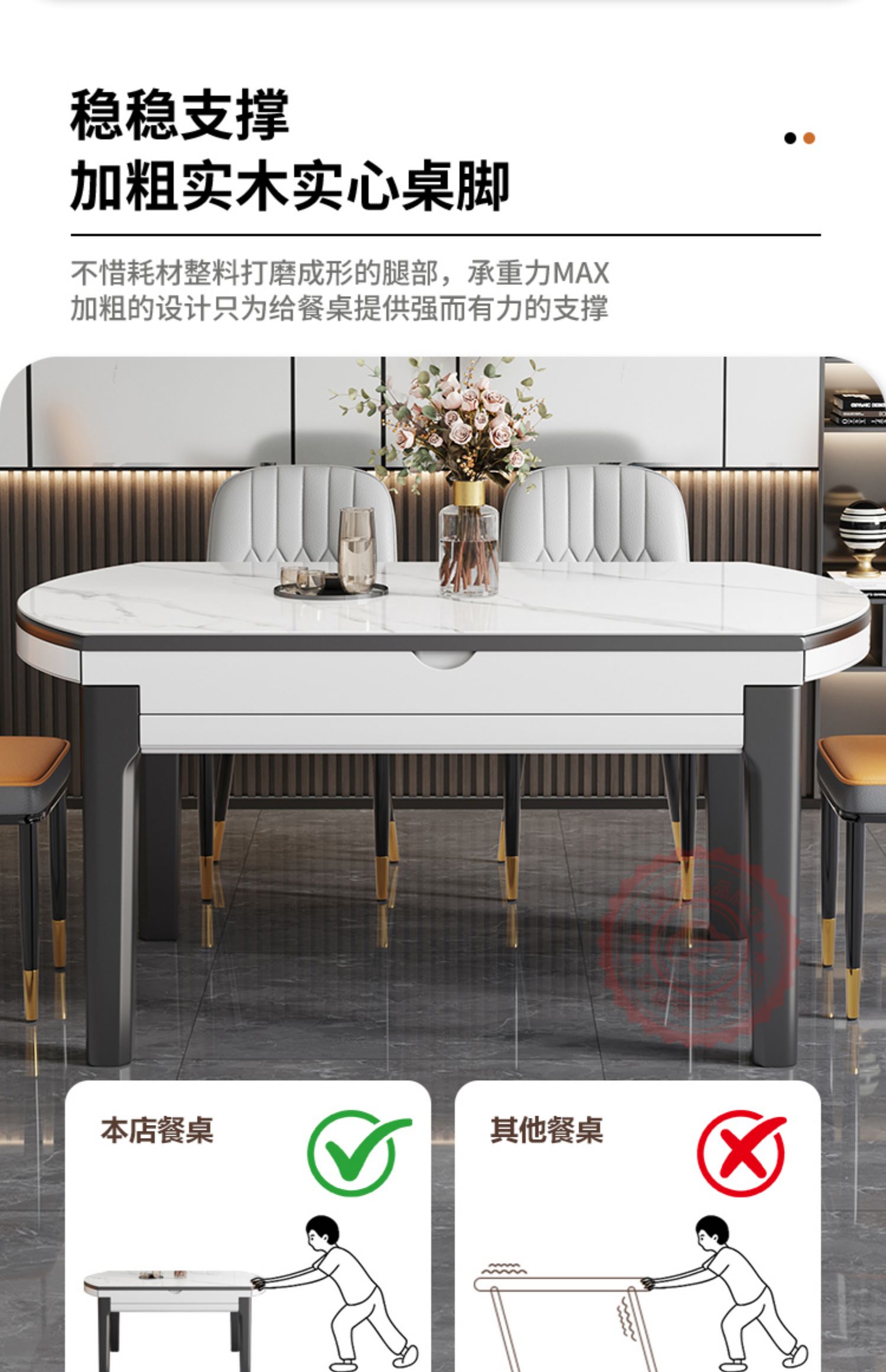 Solid wood rock board dining table and chair combination 2025 new modern simple household small unit telescopic dining table variable round table