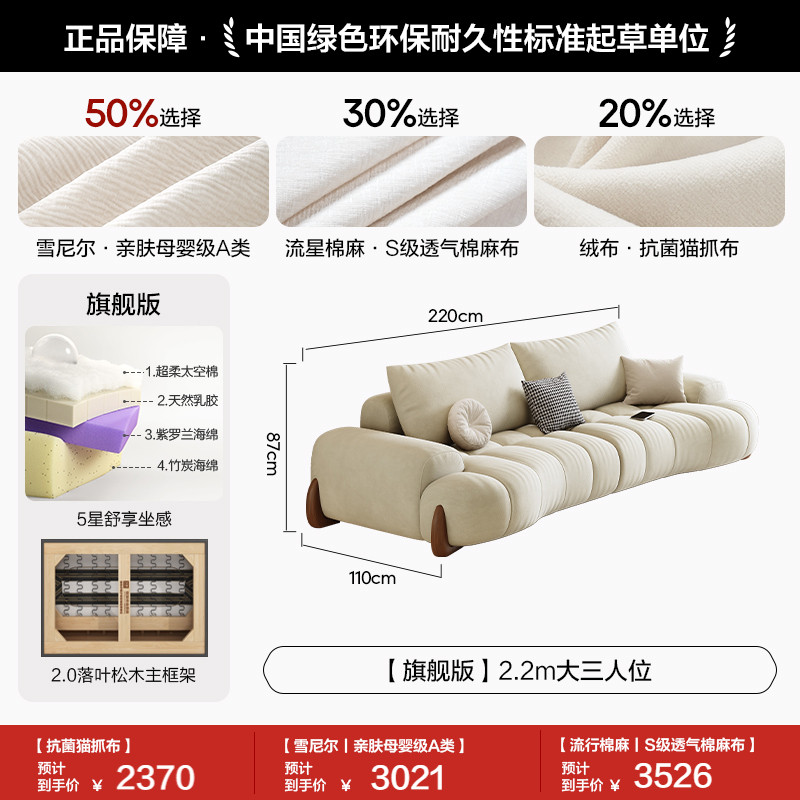 Flagship version 2.2m 5-star comfortable sitting experience+2.0 pine solid wood frame Flagship version 2.5m 5-star comfortable sitting experience+2.0 pine solid wood frame Flagship version 2.8m 5-star comfortable sitting experience+2.0 pine solid wood frame Flagship version 3.1m 5-star comfortable sitting experience+2.0 pine solid wood frame Flagship version 3.4m 5-star comfortable sitting experience+2.0 pine solid wood frame Ultra version 2.2m 7-star cloud wrapped sitting experience+3.0 heavy birch frame Ultra version 2.5m 7-star cloud wrapped sitting experience+3.0 heavy birch frame Ultra version 2.8m 7-star cloud wrapped sitting experience+3.0 heavy birch frame Ultra version 3.1m 7-star cloud wrapped sitting experience+3.0 heavy birch frame Ultra version 3.4m 7-star cloud wrapped sitting experience+3.0 heavy birch frame Ultra version Wooden frame detailed consultation customer service consultation customer service has surprises
