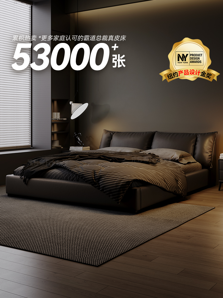 Government subsidy for Fashati cowhide leather bed, high-end and atmospheric 1.8m bed, light luxury wedding bed, Italian master bedroom soft bag bed