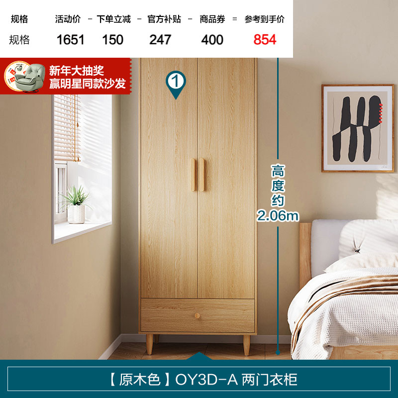 Lin's Home Wood Color Bedroom Household Solid Wood High Foot Finished Wardrobe Combination Flat Door Wardrobe Cabinet OY3D