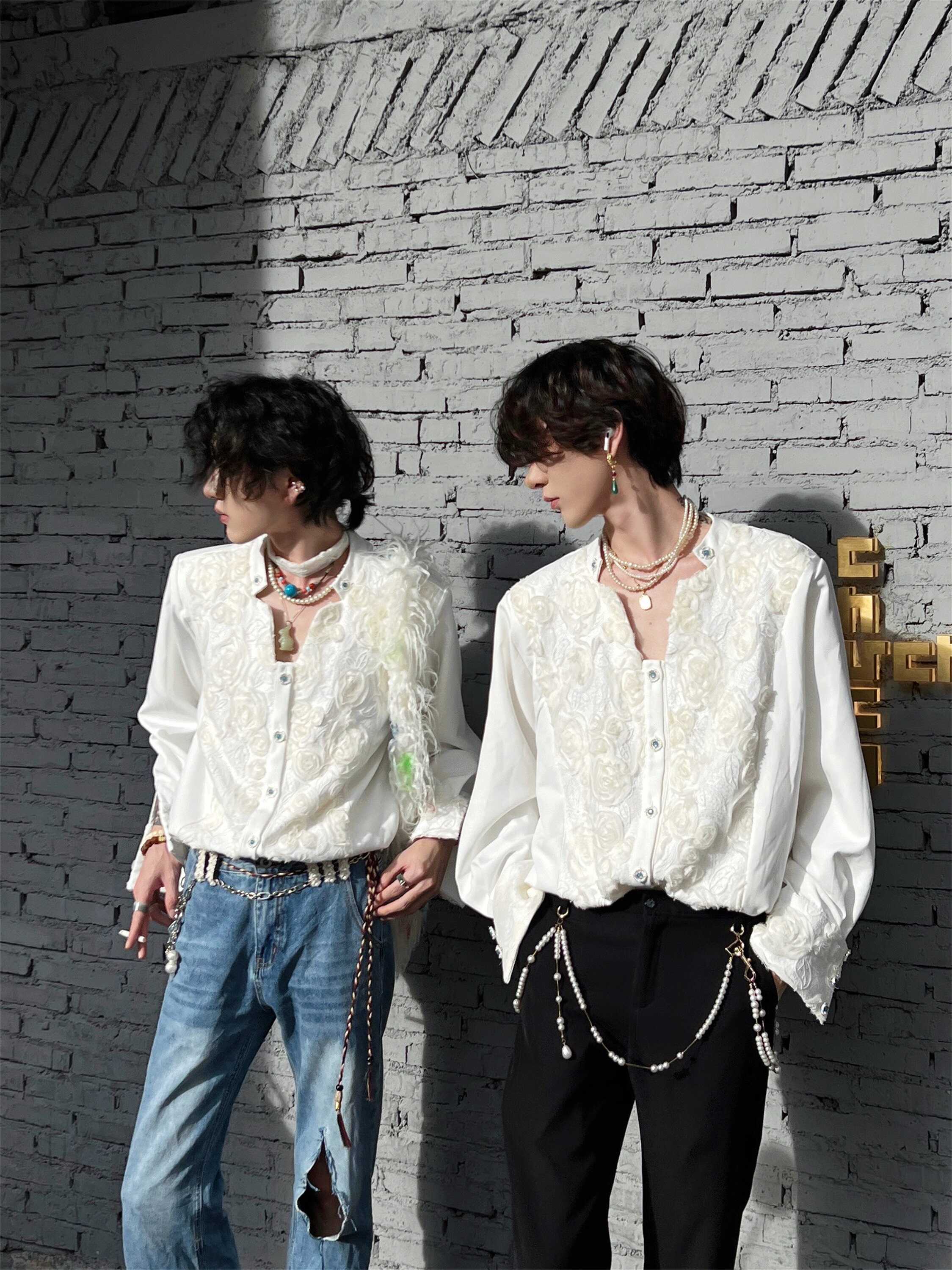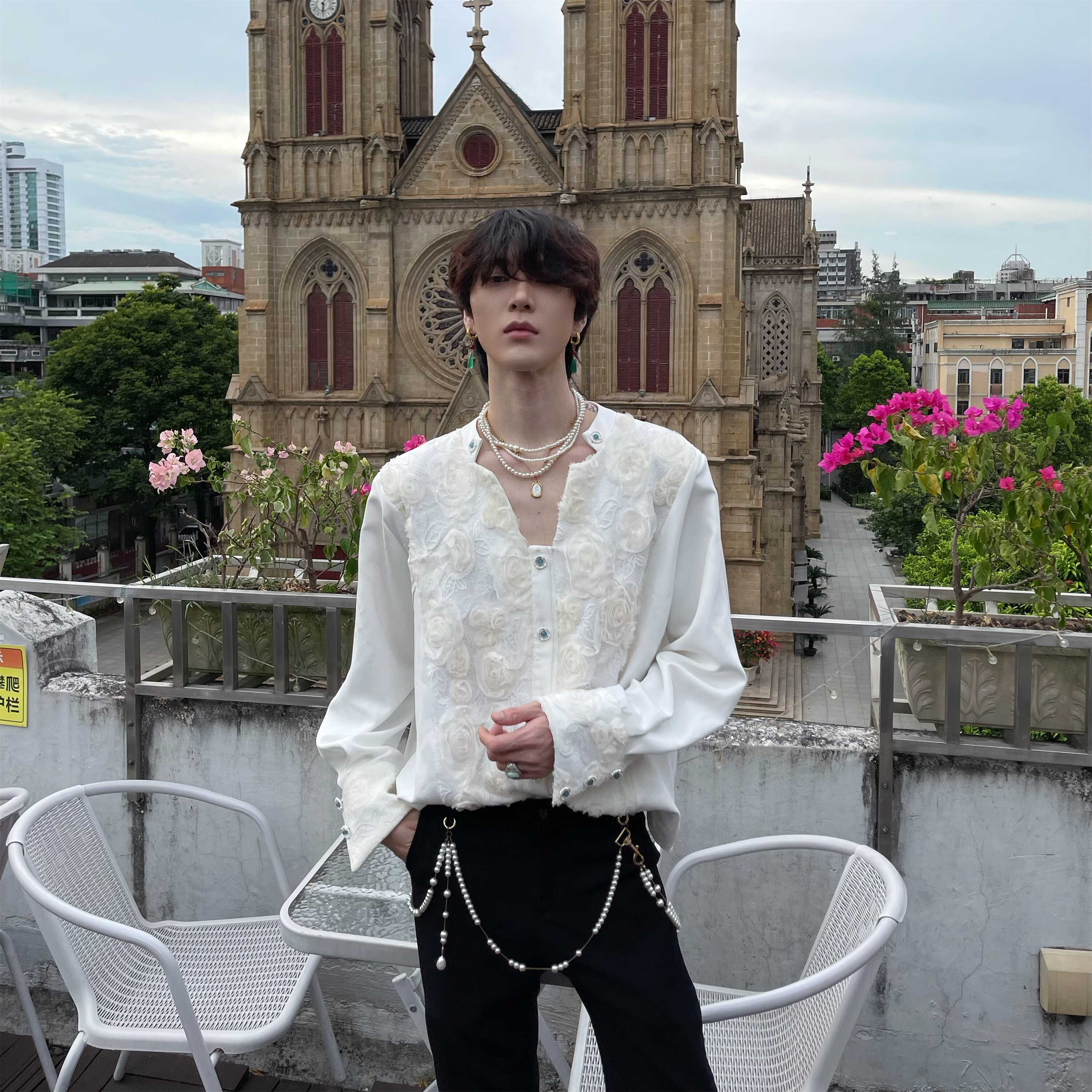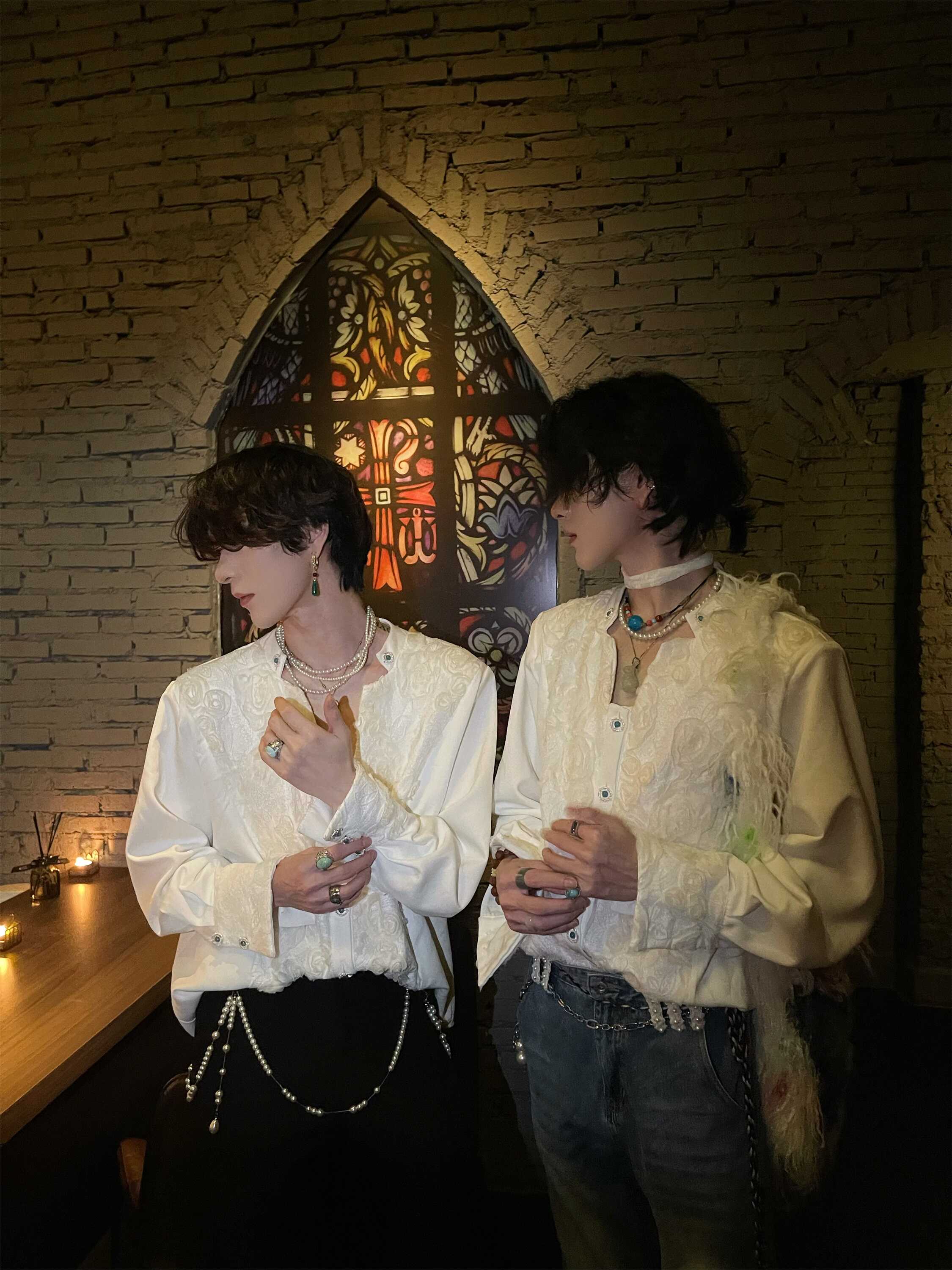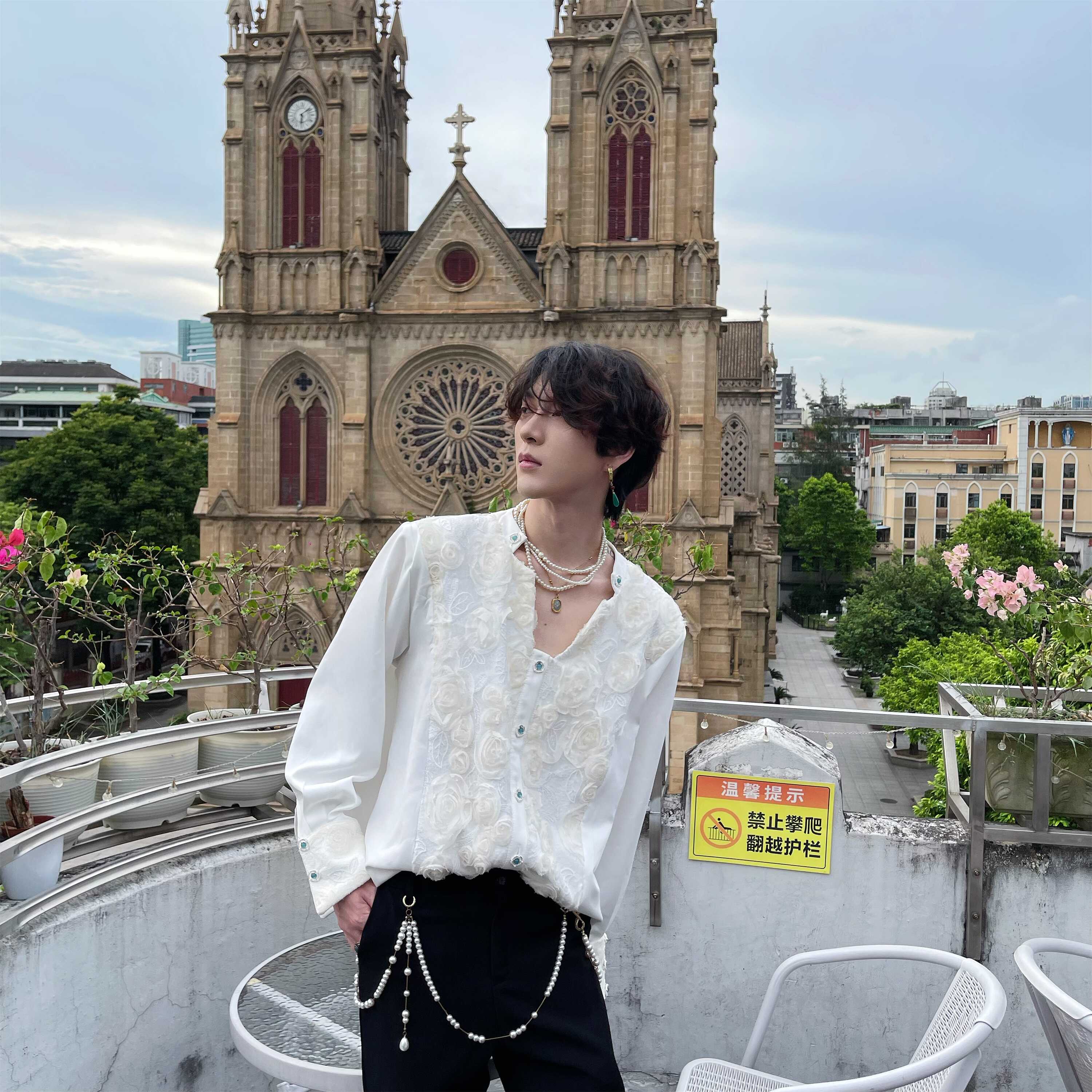 YUCGERX niche design sense White Emperor original collar fashionable versatile cat eye buckle temperament plate embroidered shirt