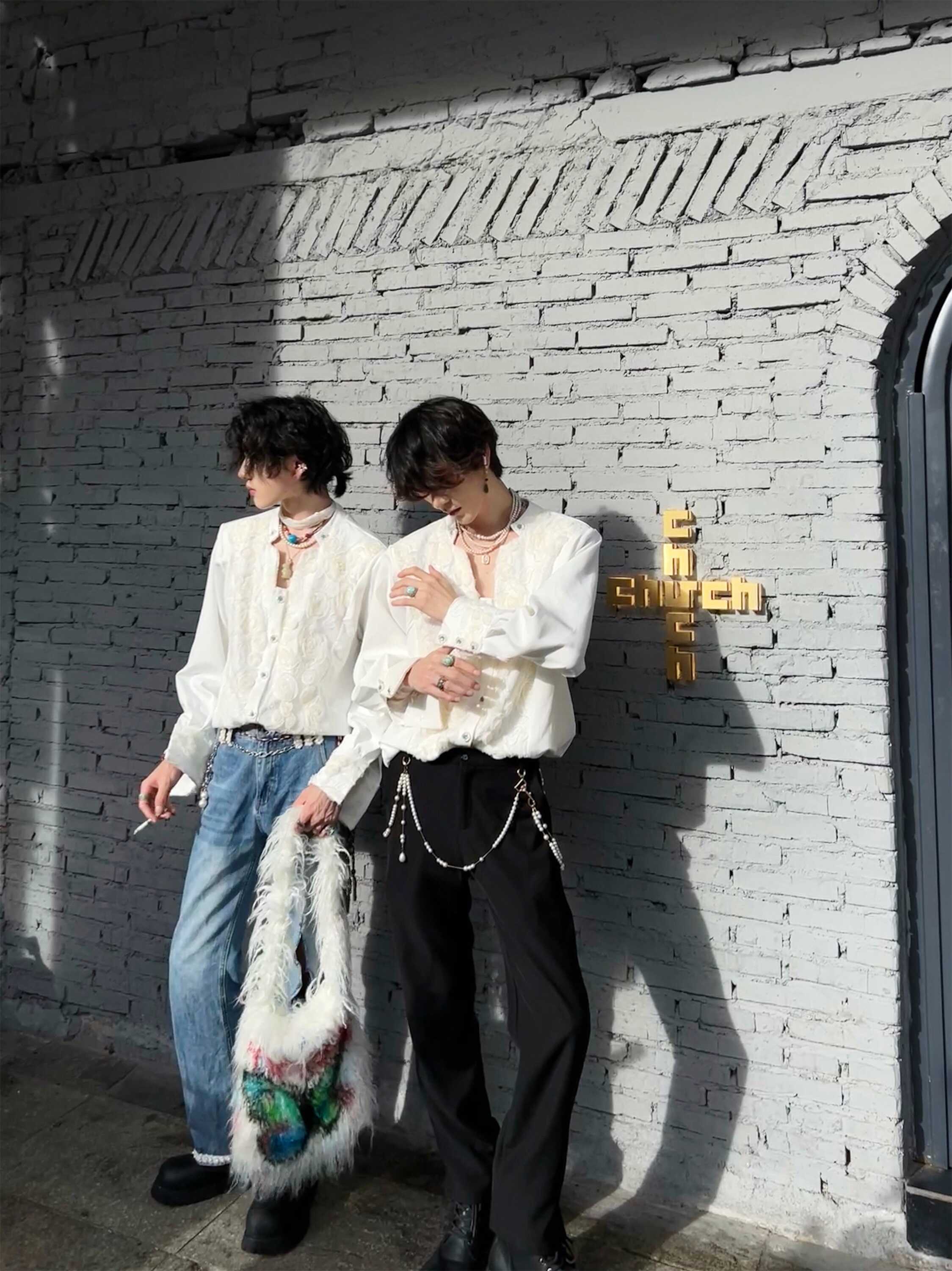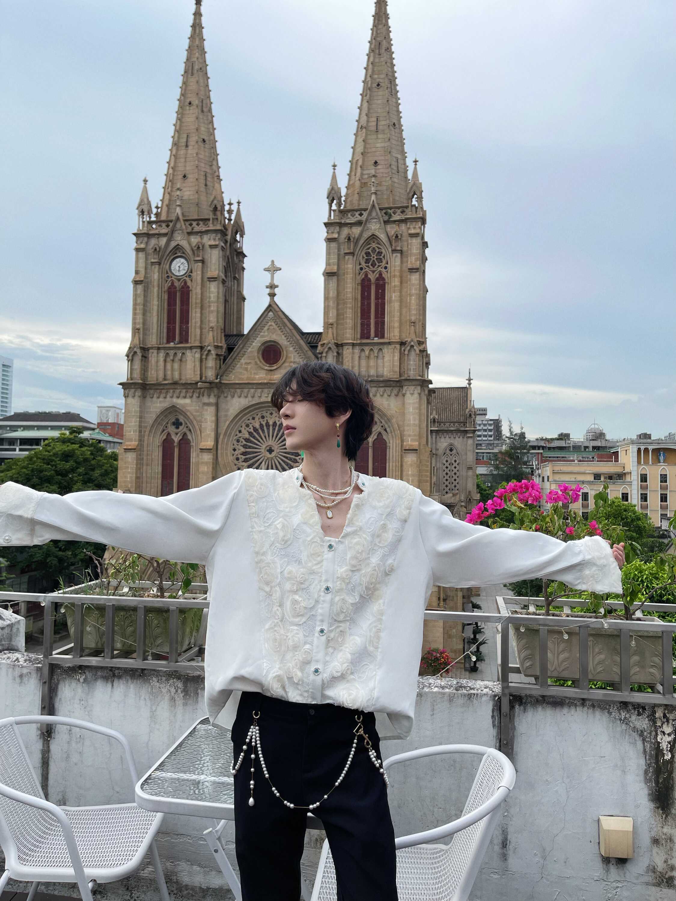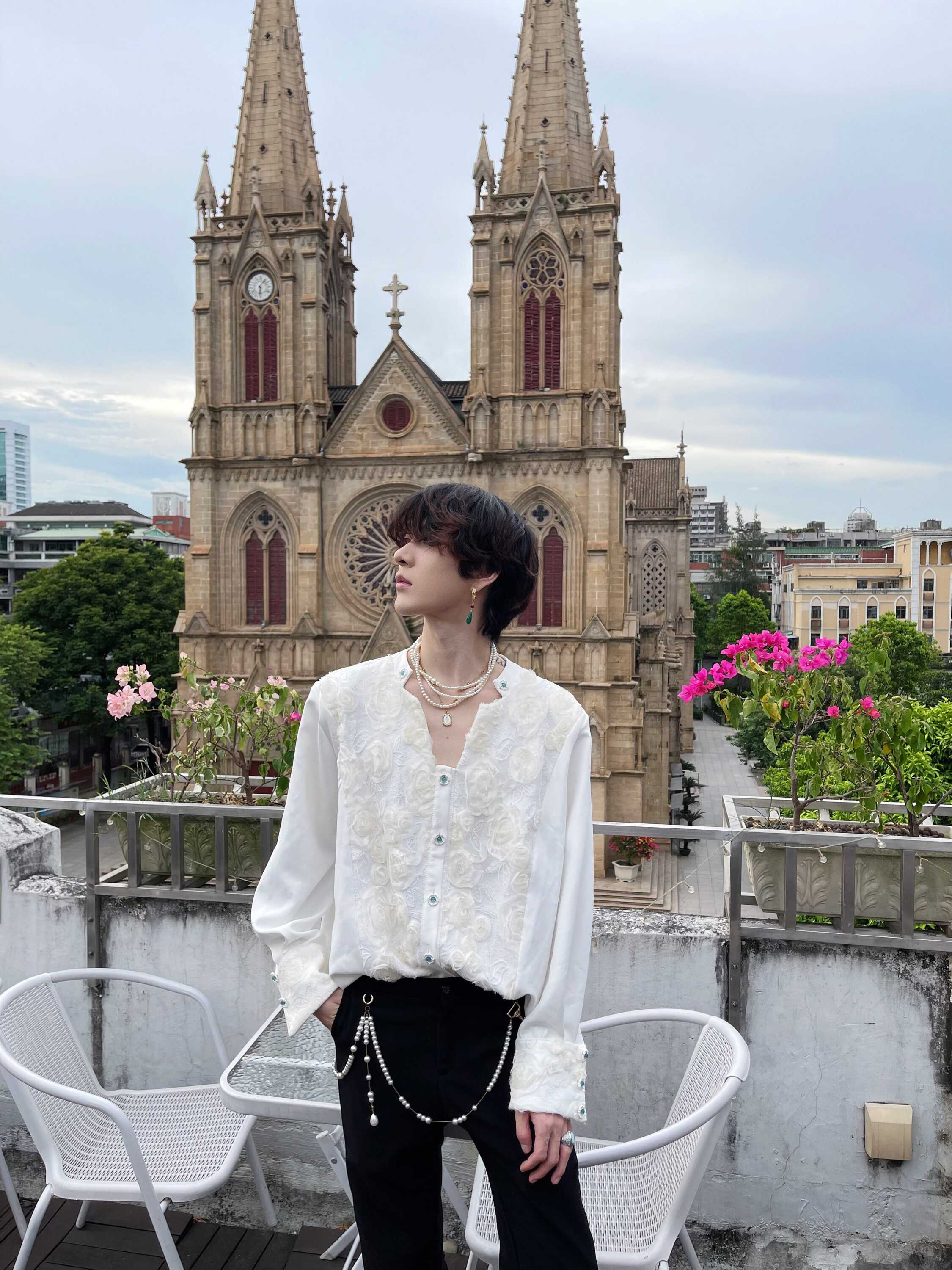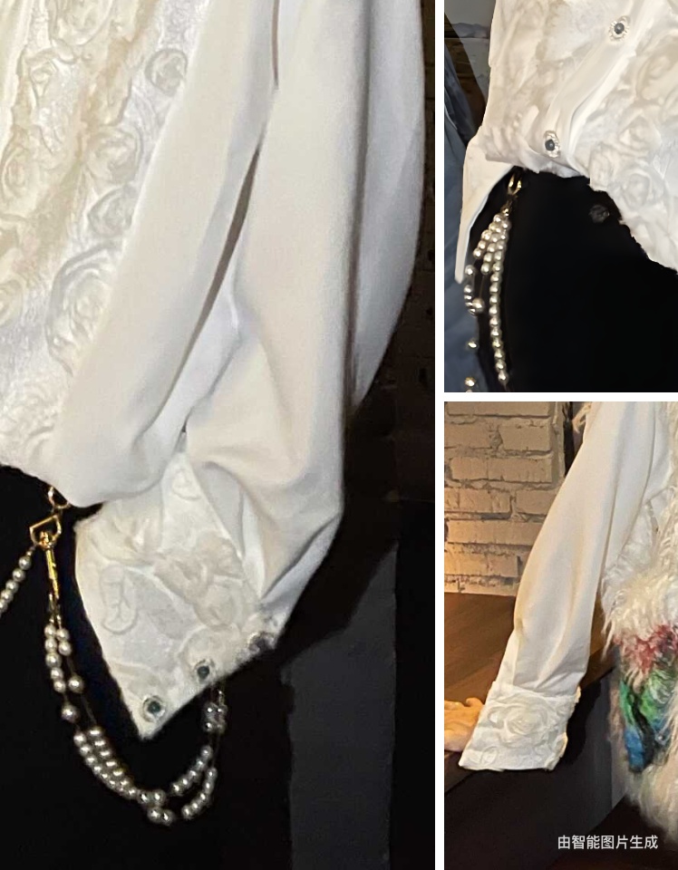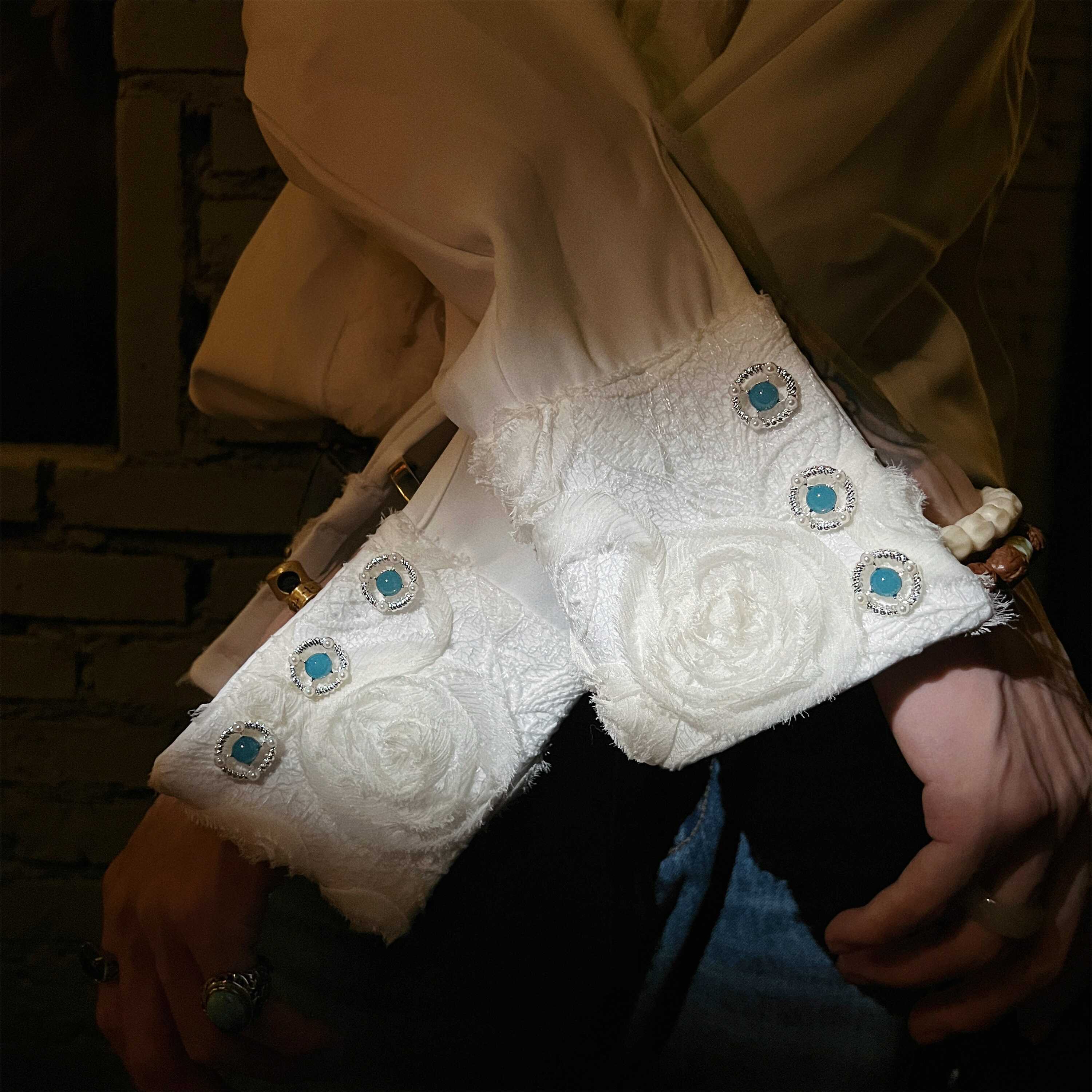 YUCGERX niche design sense White Emperor original collar fashionable versatile cat eye buckle temperament plate embroidered shirt