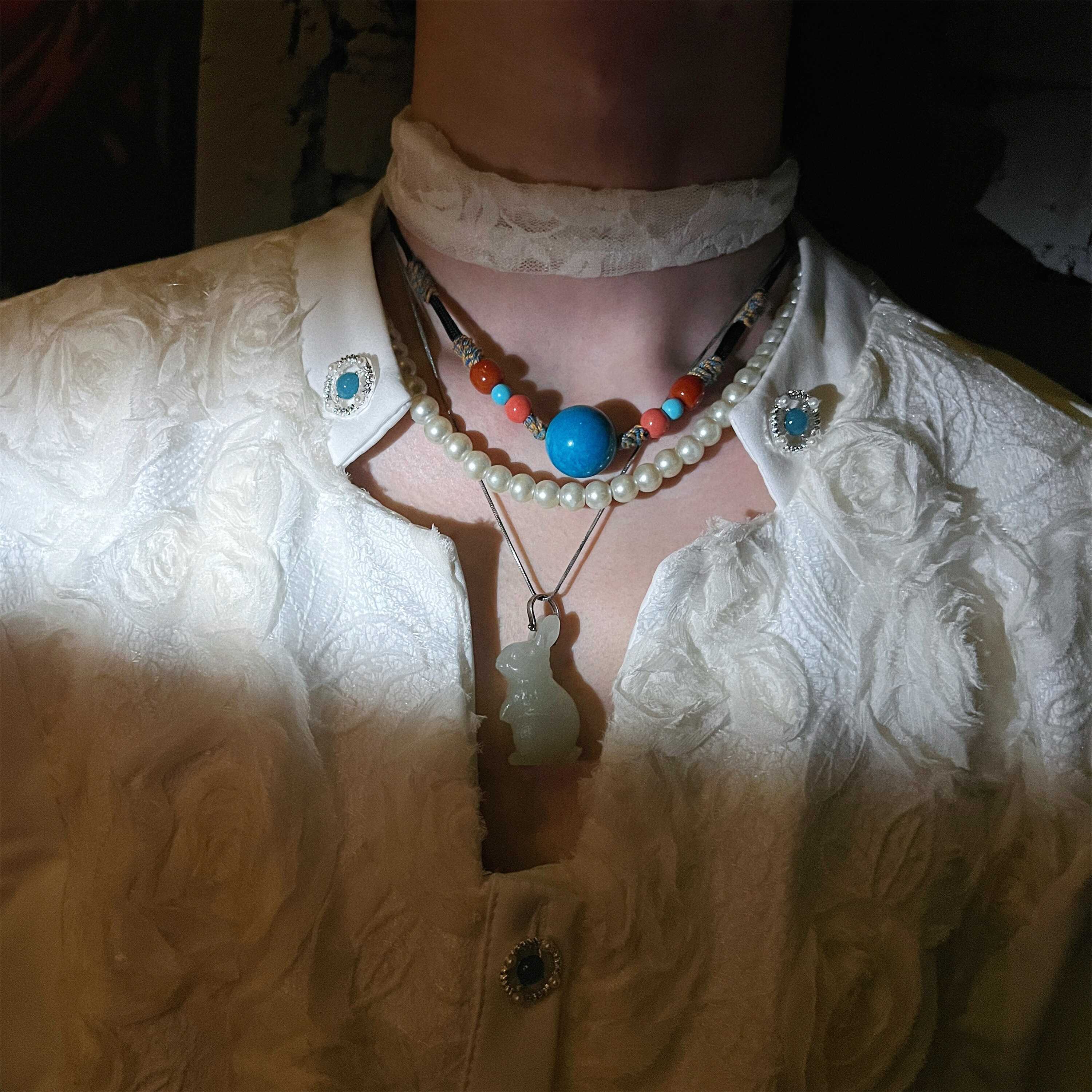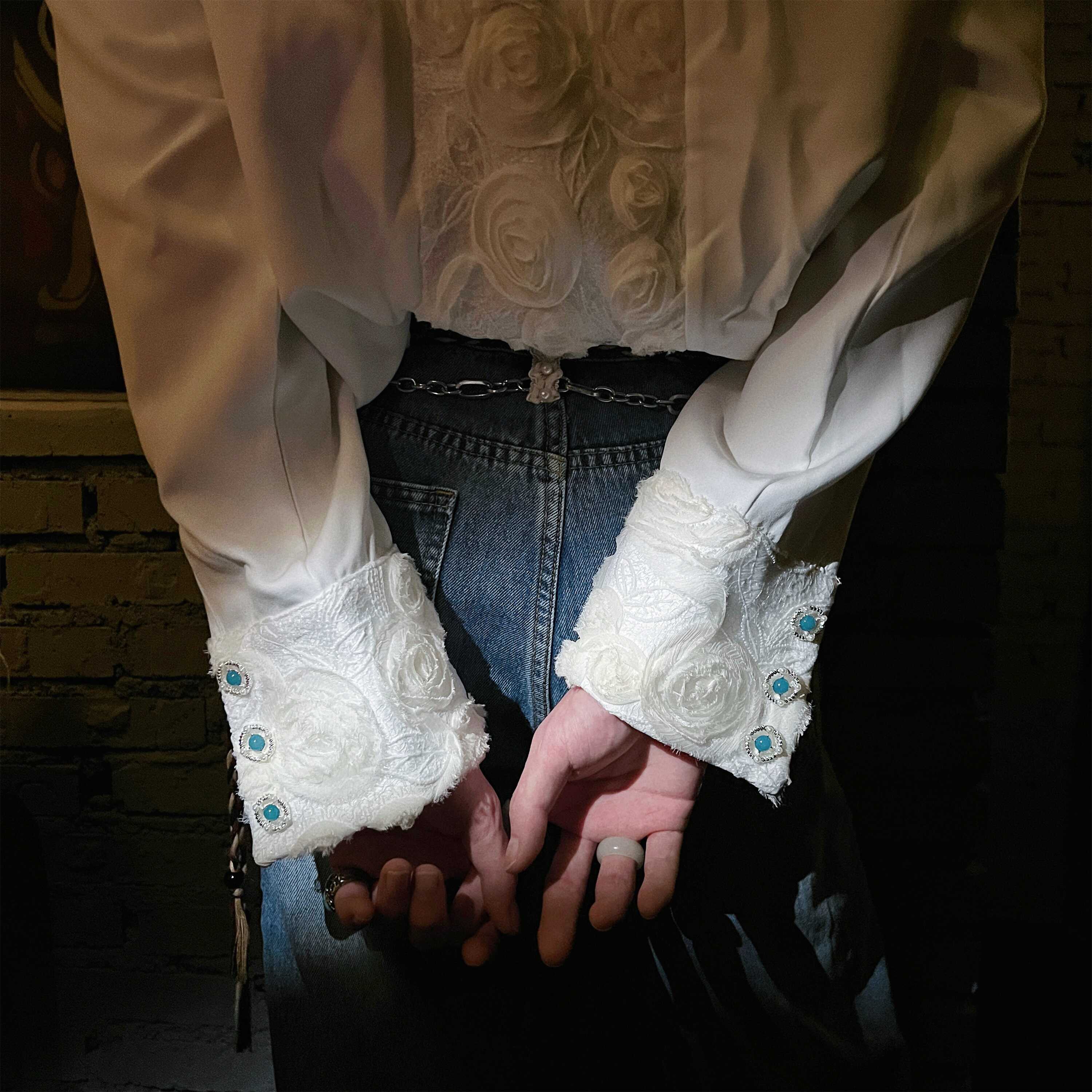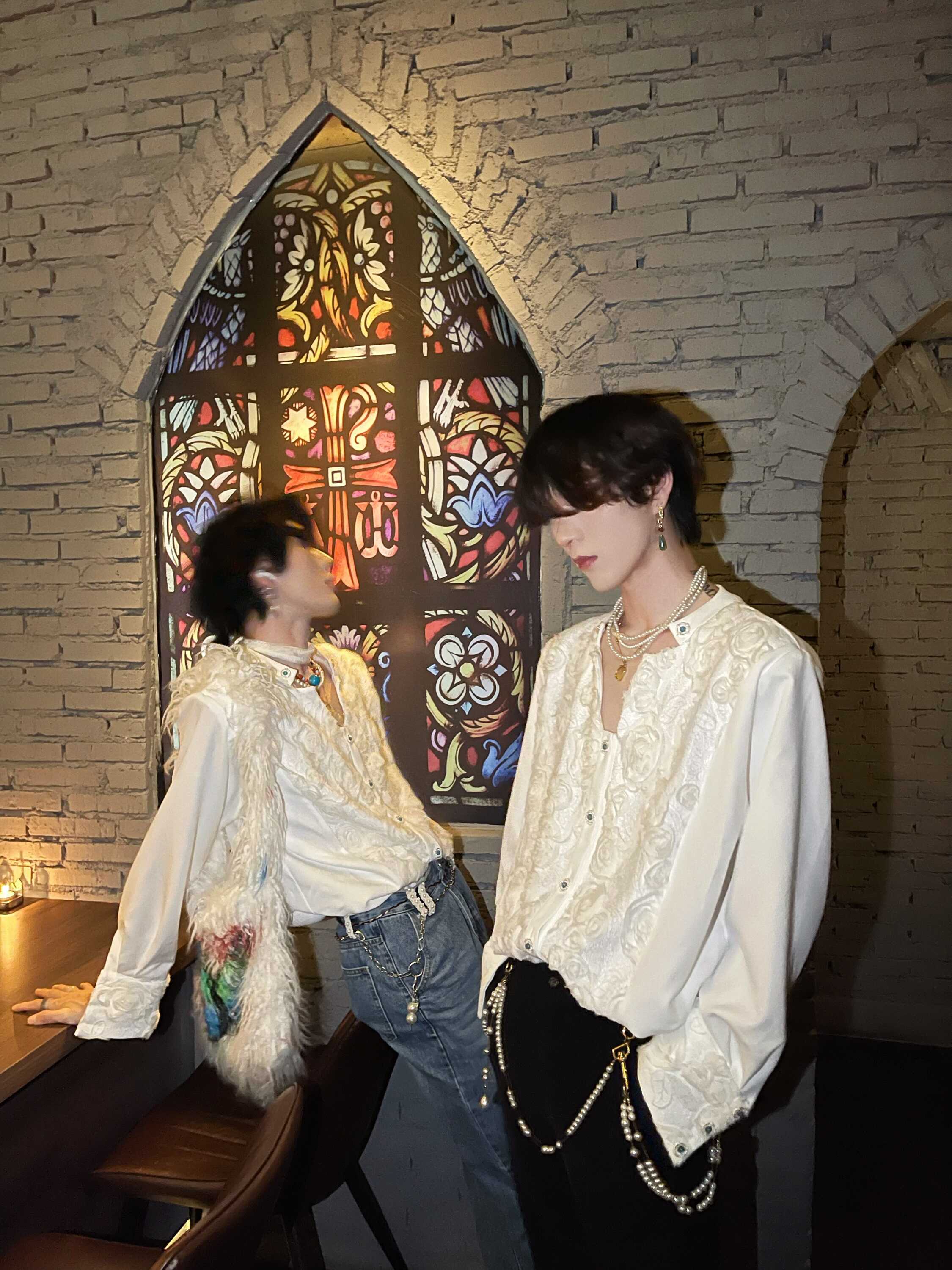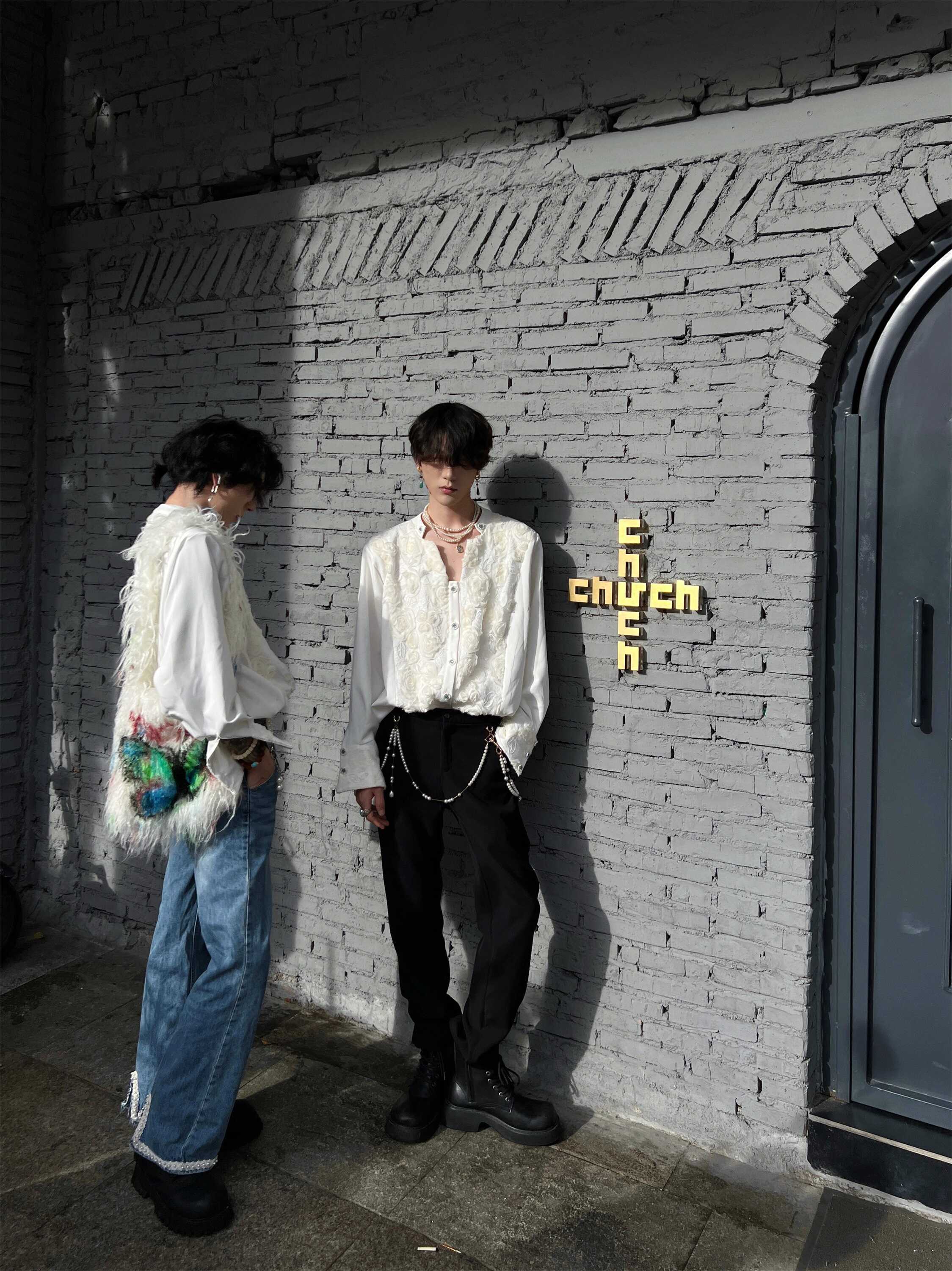 YUCGERX niche design sense White Emperor original collar fashionable versatile cat eye buckle temperament plate embroidered shirt