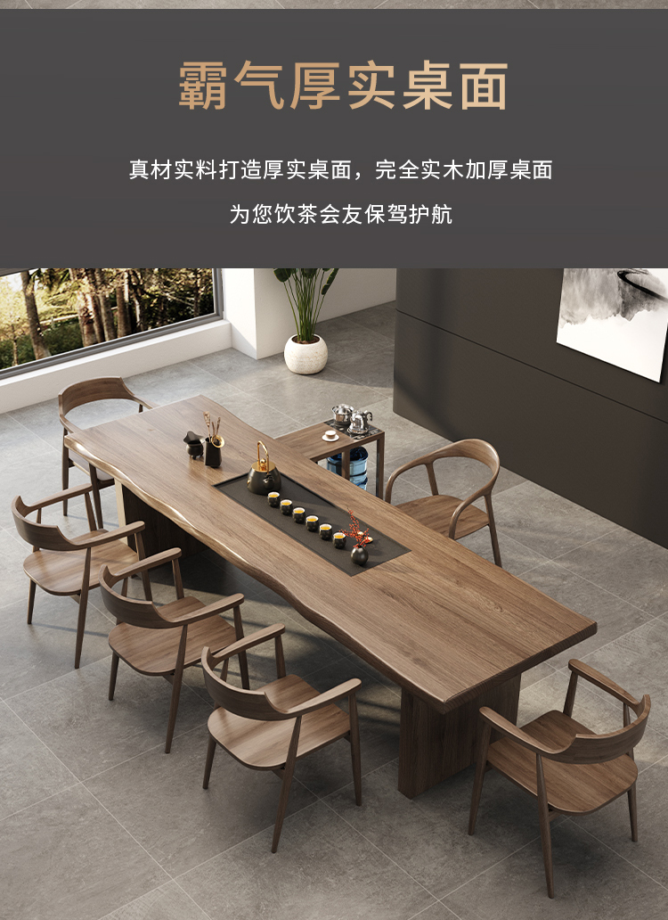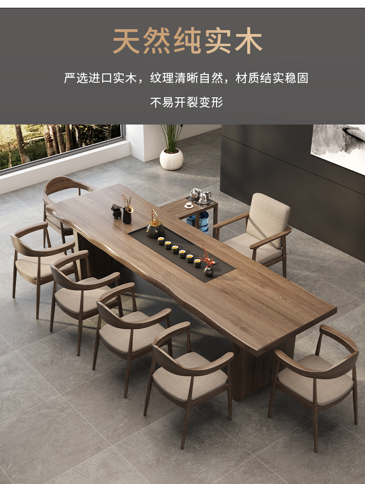 Solid wood tea table, integrated tea brewing table and chair combination, modern and simple new Chinese style office, Kung Fu Zen style large board tea table