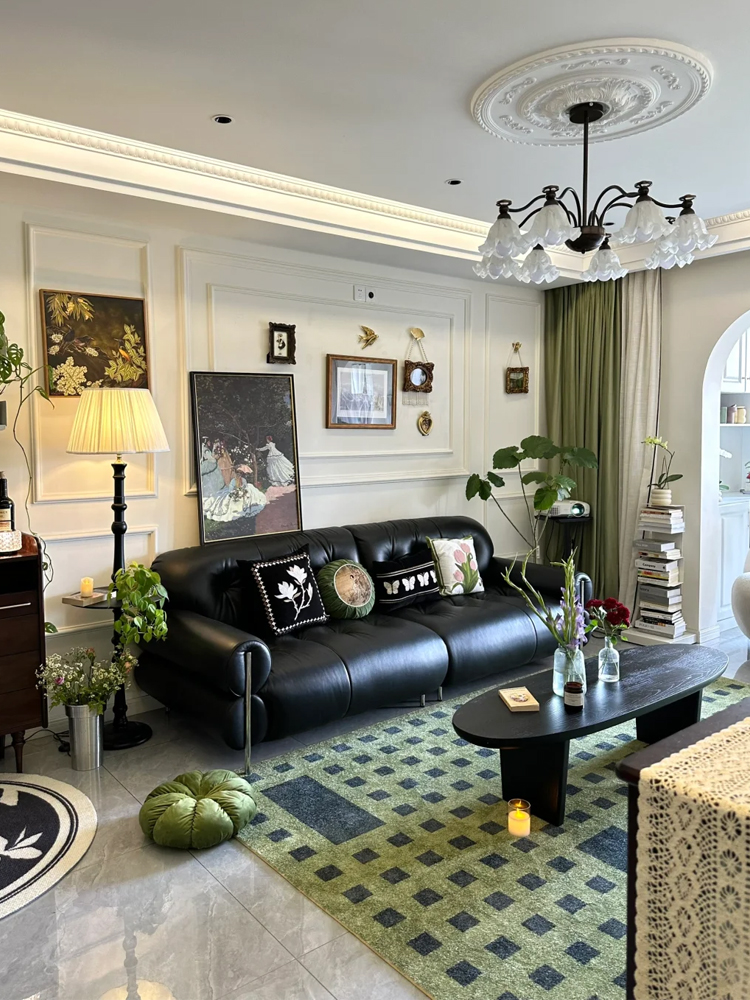 Indoor furniture, French brown sugar cloud sofa, small-sized leather sofa, antique style, black American retro furniture