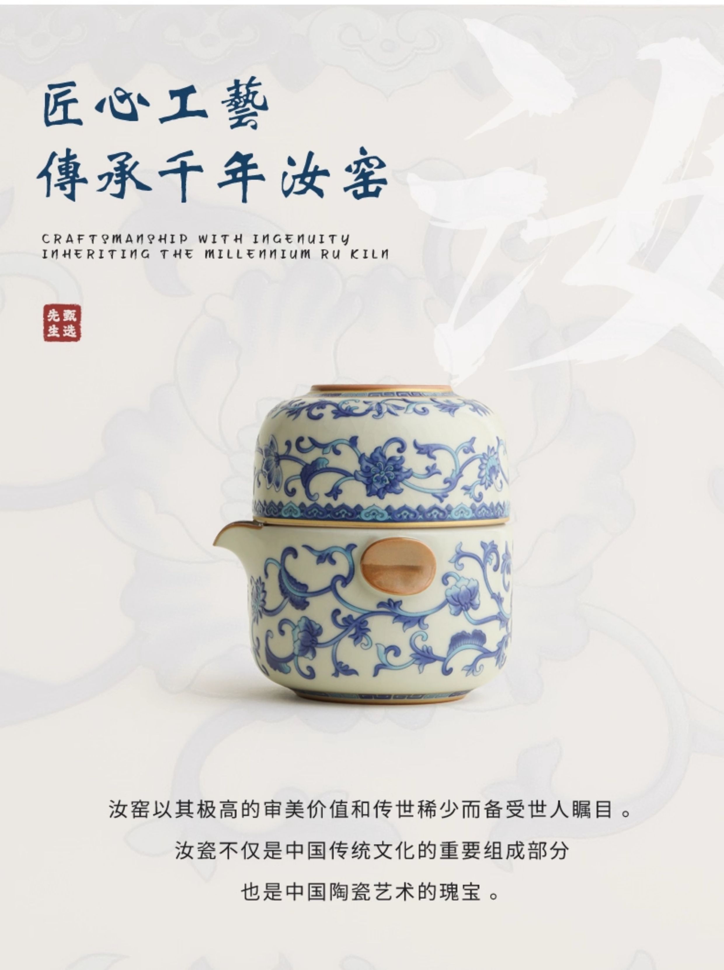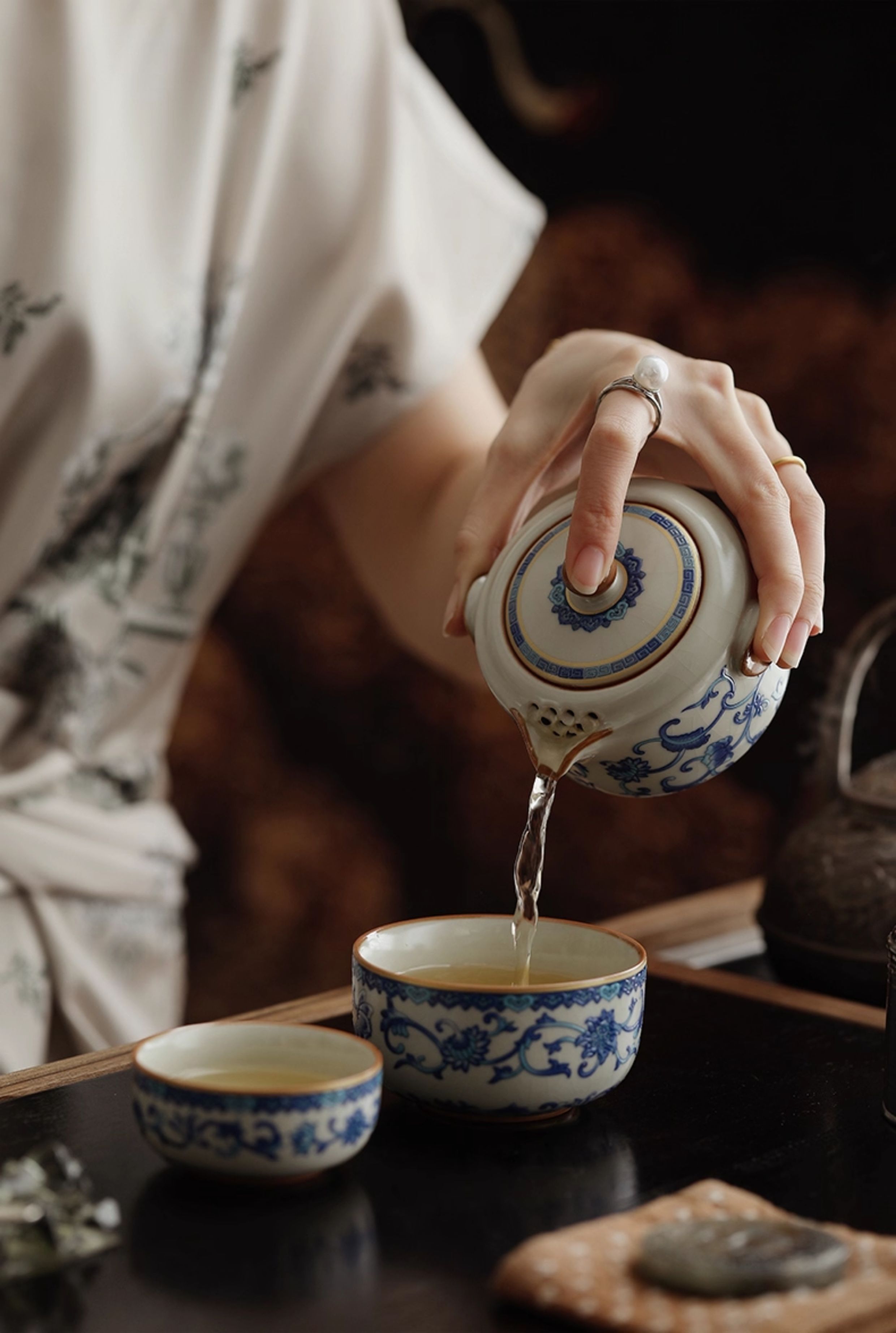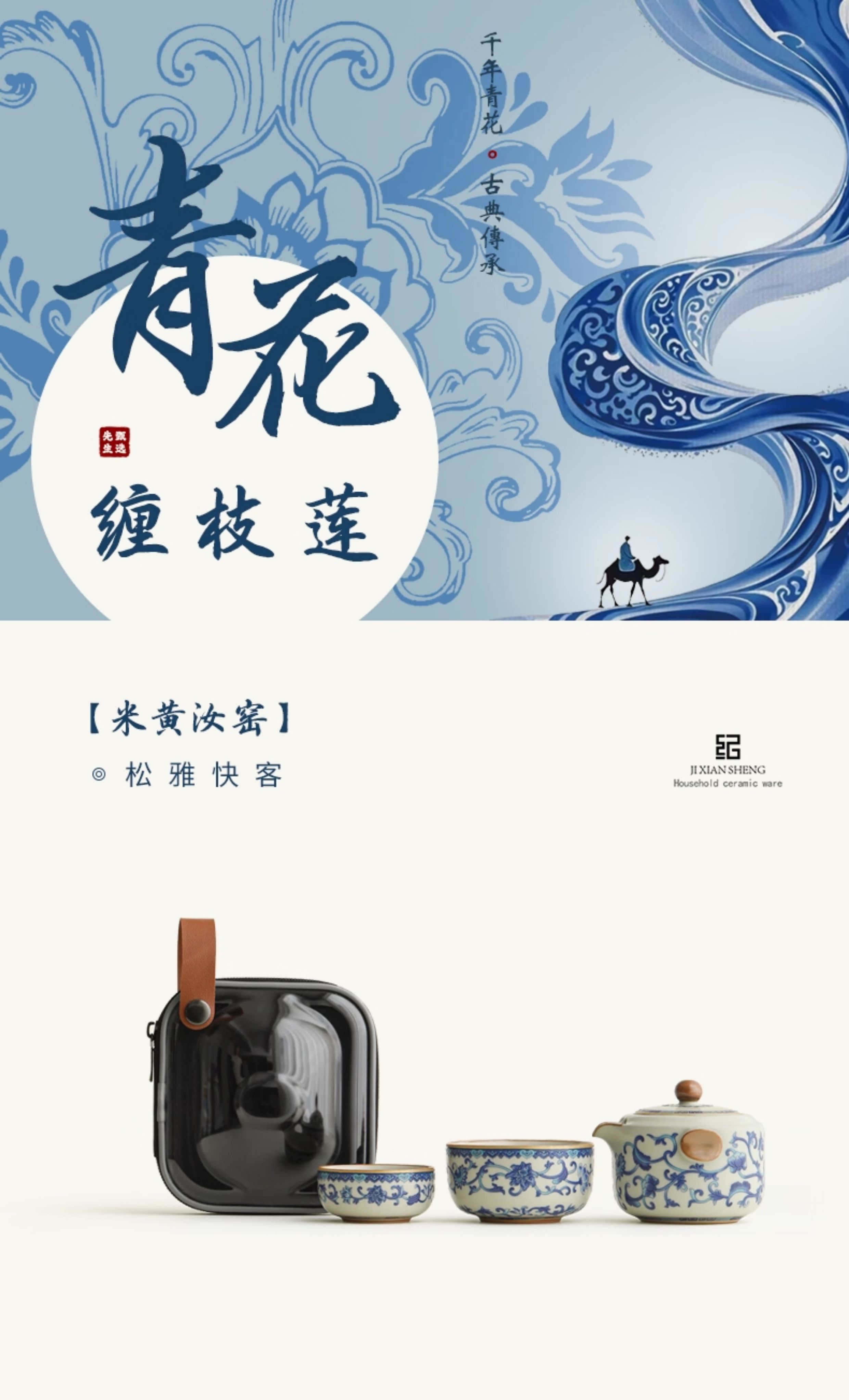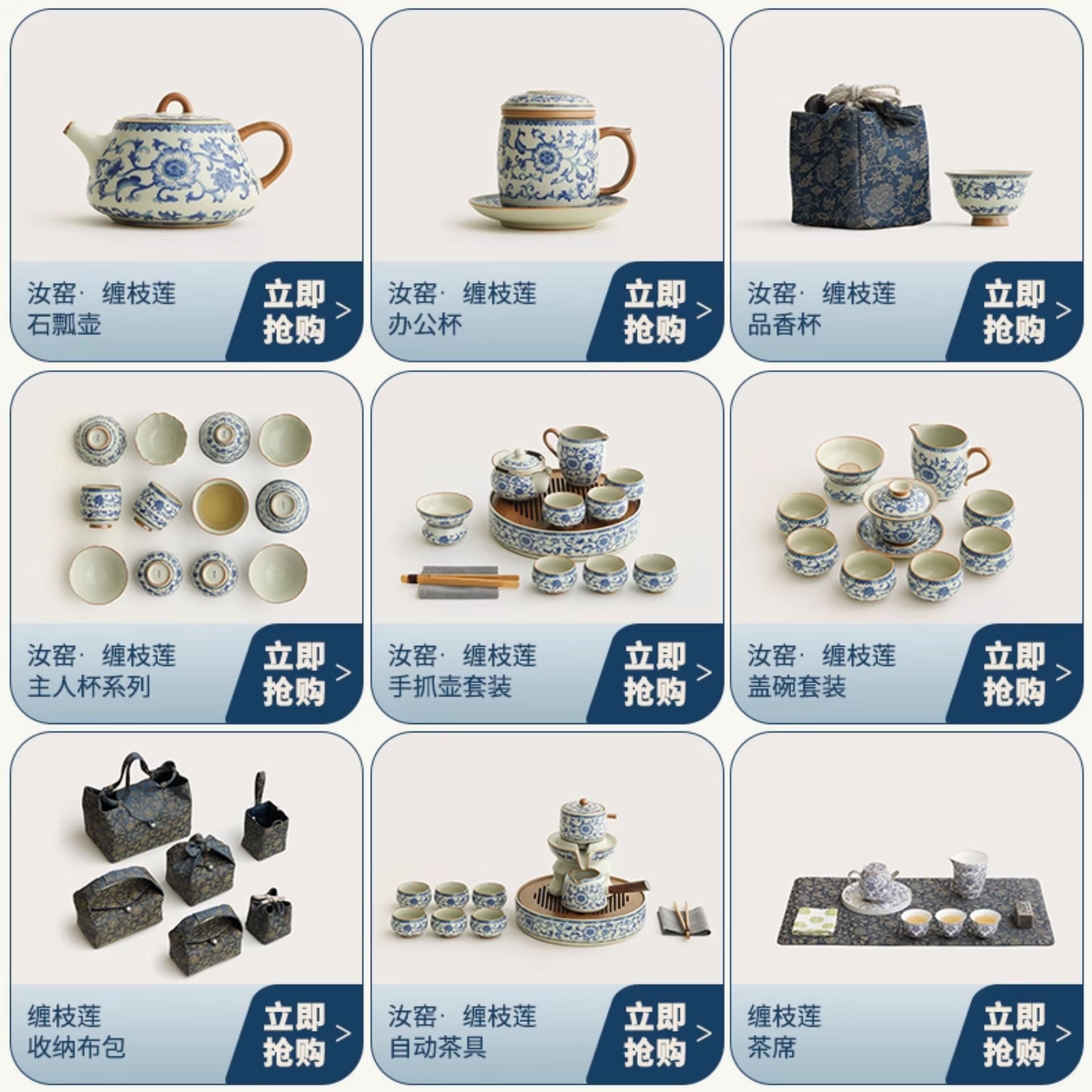 1. (Blue and White Entangled Lotus) Mi Huang Ru Kiln | Songya Quick Customer Cup Portable Set 2. (Blue and White Entangled Lotus) Mi Huang Ru Kiln | Songya Quick Customer Cup Gift Box Set