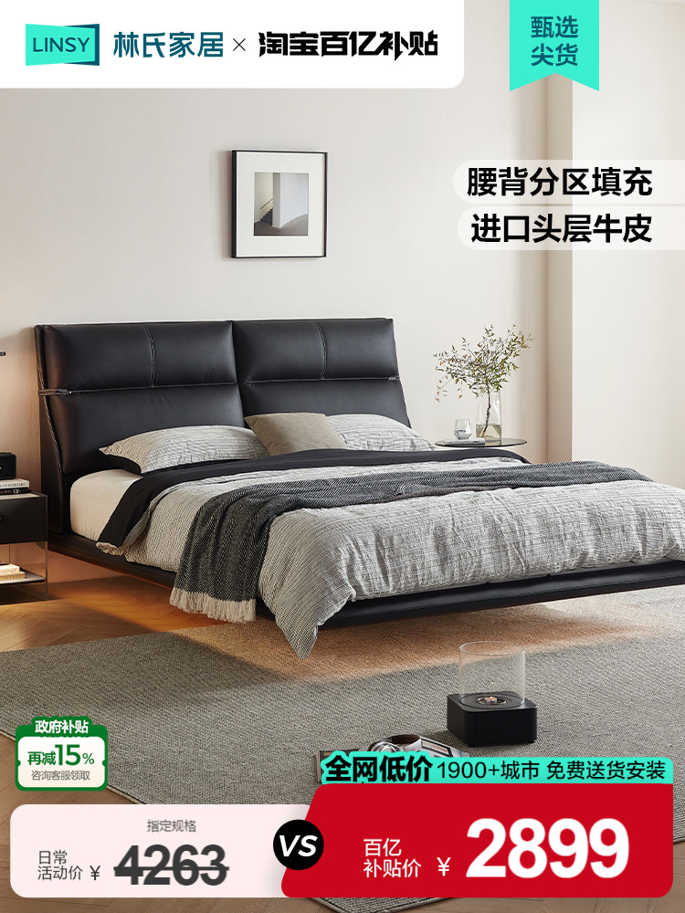 Lin's Home Phonograph Leather Soft Bed Suspended Master Bedroom Big Bed Double Bed Soft Bag Middle aged Wood PC550