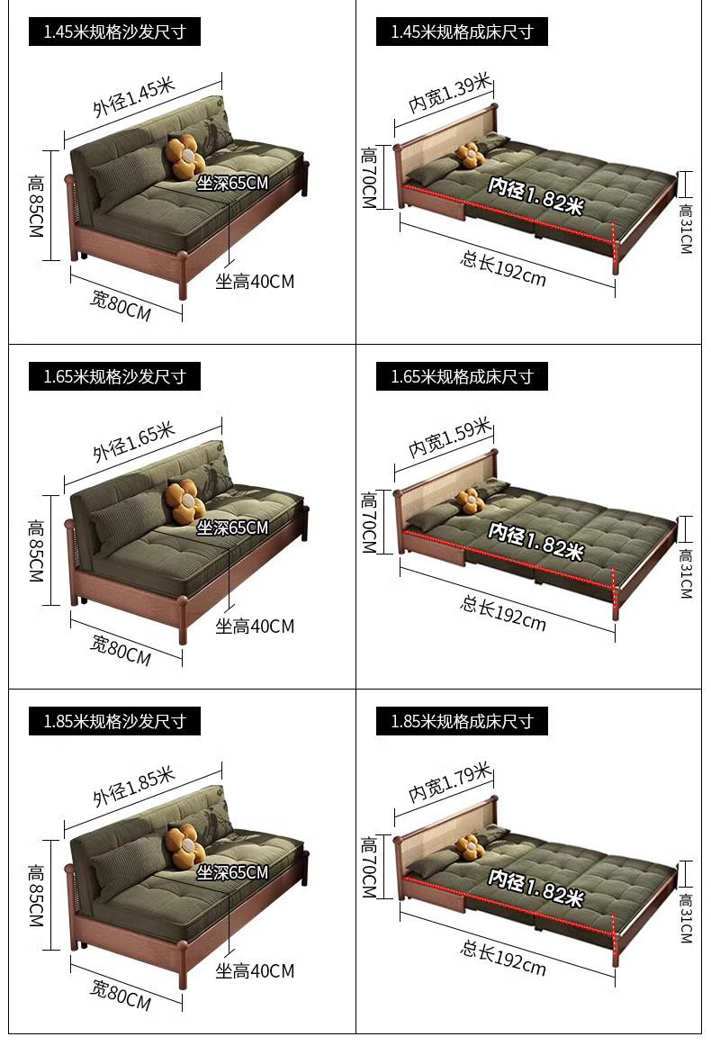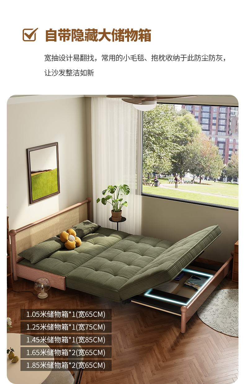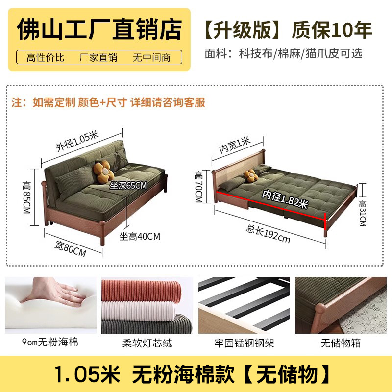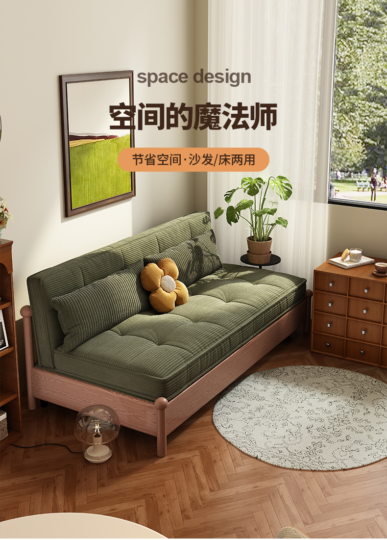 Ispa Yizhai Solid Wood Sofa Bed Folding and Stretching Dual use Single New Living Room Multi functional Storage Sofa