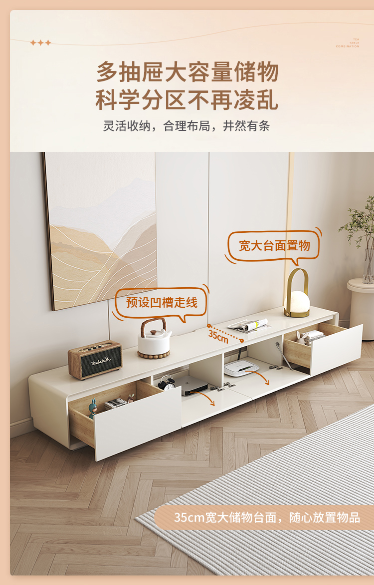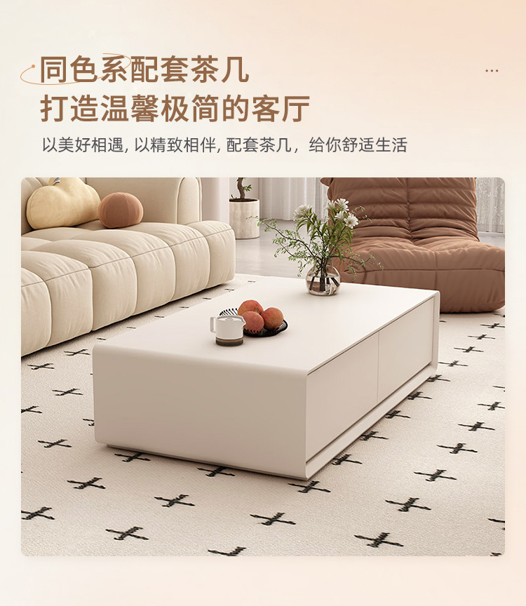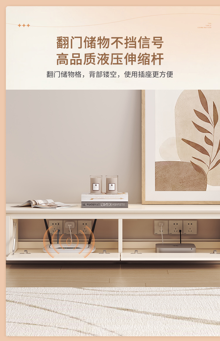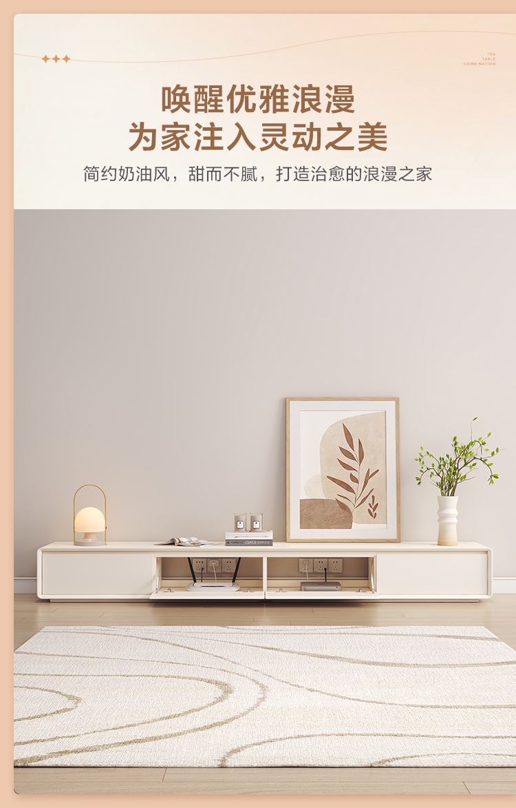 Cream style floor standing TV cabinet, modern and simple small-sized solid wood living room, 2025 new TV cabinet, coffee table