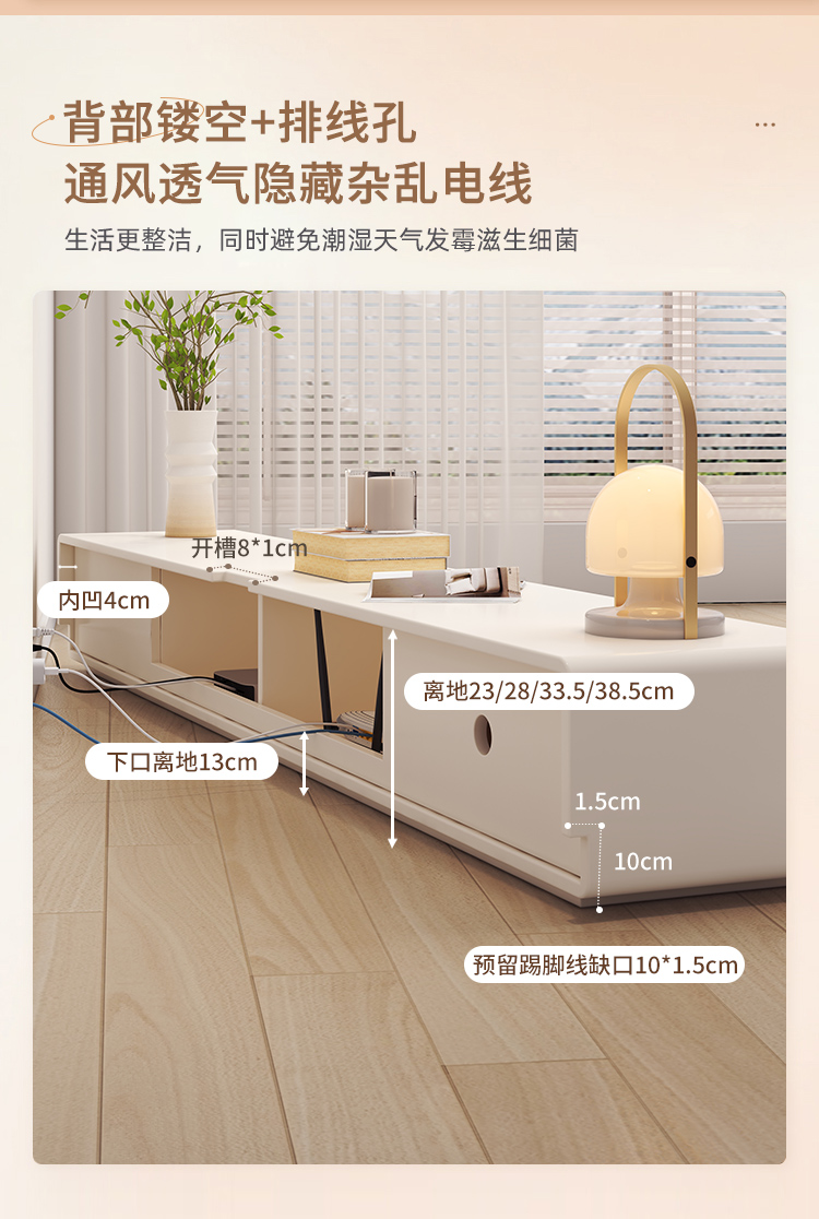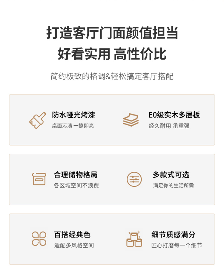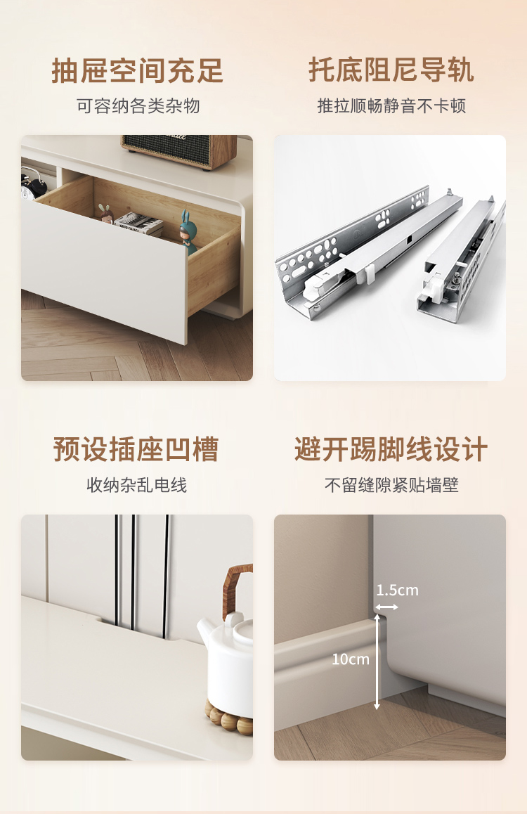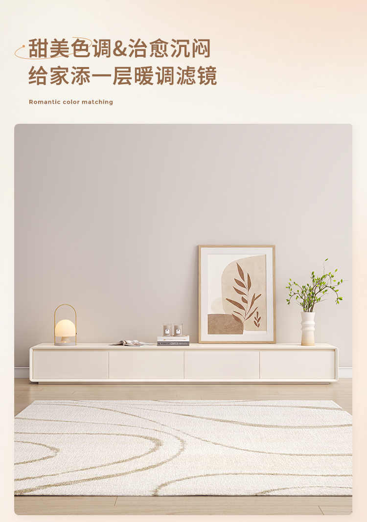 Cream style floor standing TV cabinet, modern and simple small-sized solid wood living room, 2025 new TV cabinet, coffee table