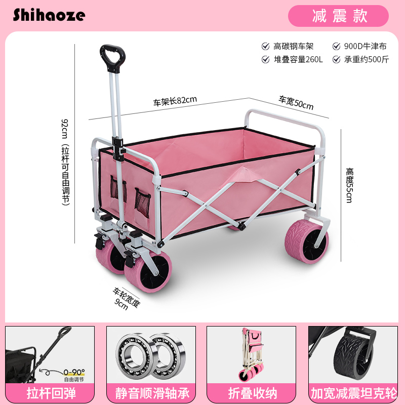 Pink camping car stall small cart foldable portable picnic camping car outdoor camping stall essential