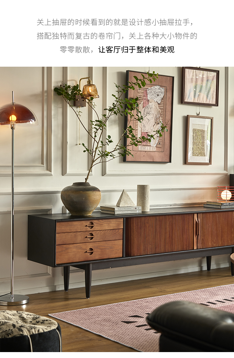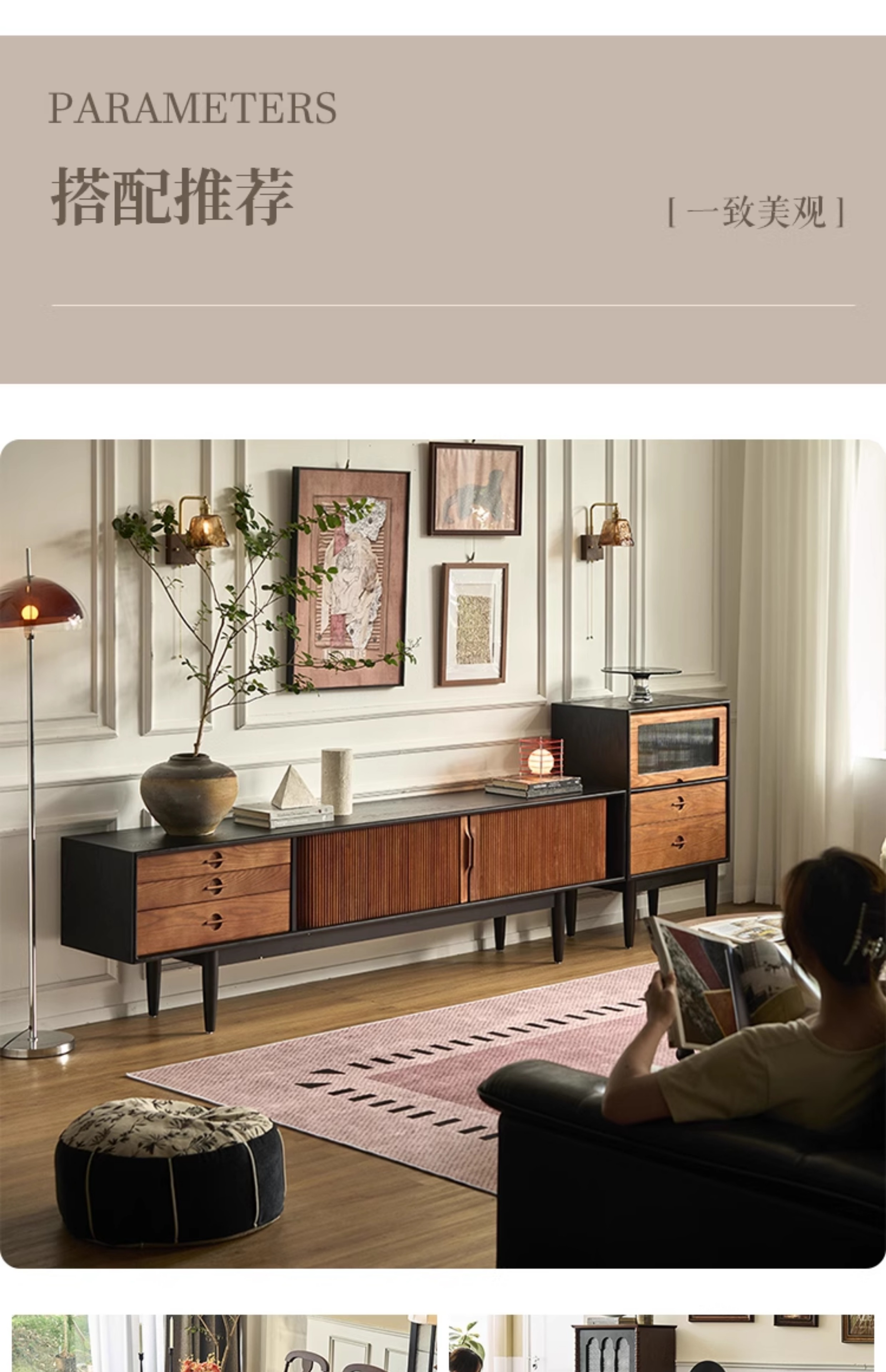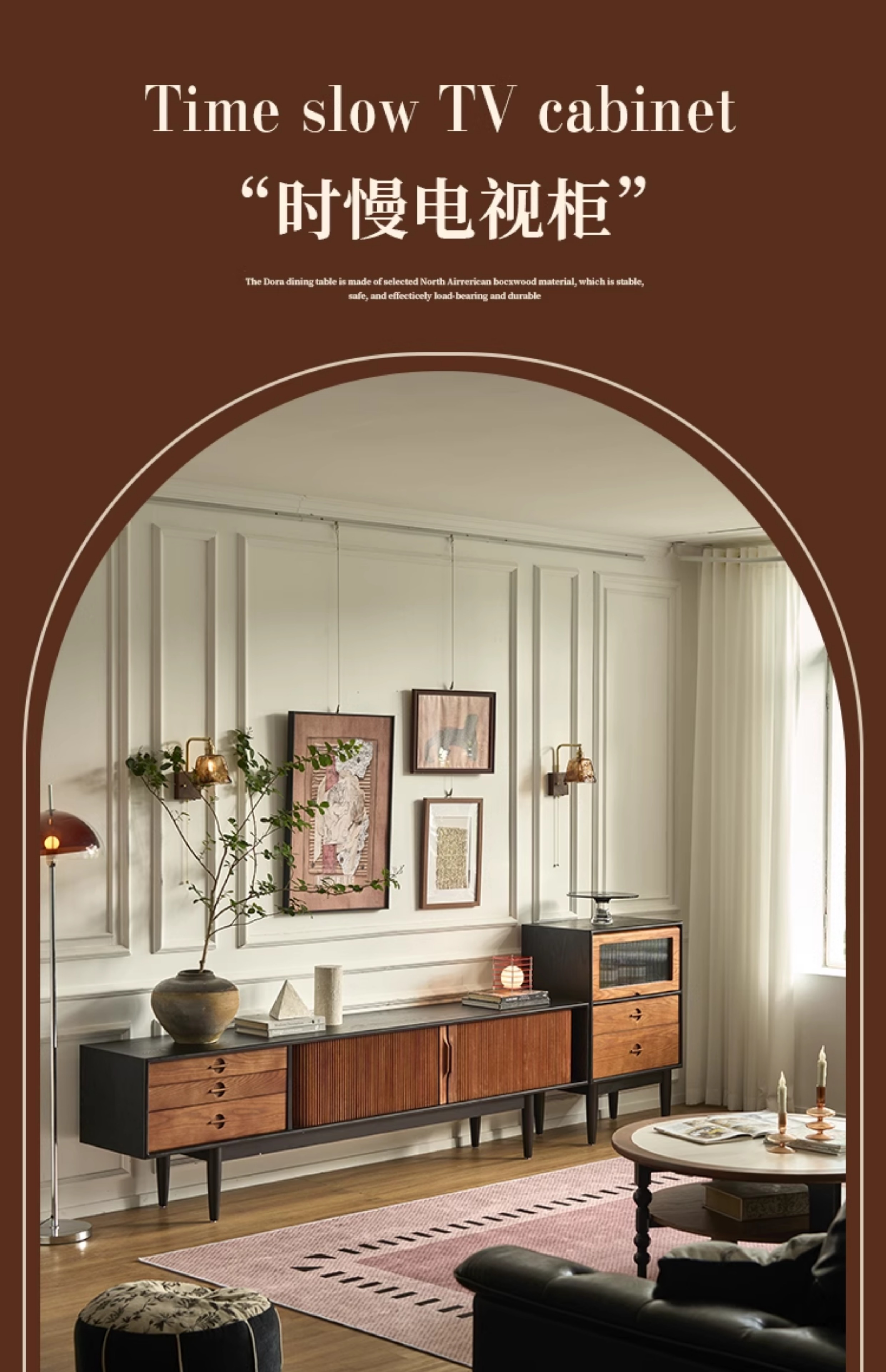 French style antique black TV cabinet covered with antique solid wood, small-sized household storage cabinet, bucket cabinet, high-end TV cabinet