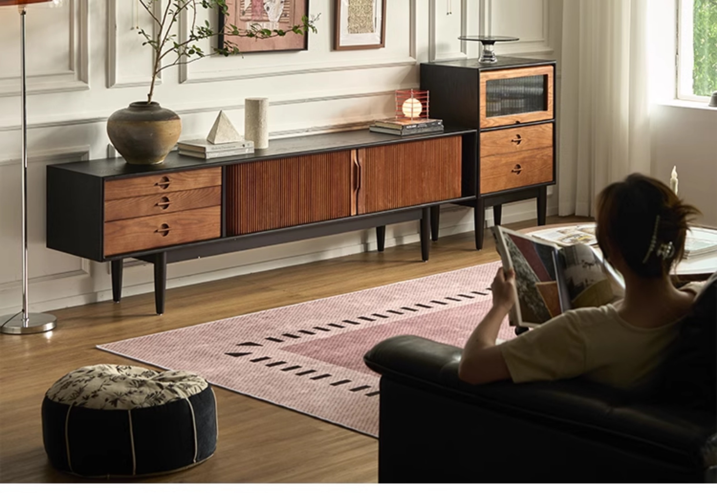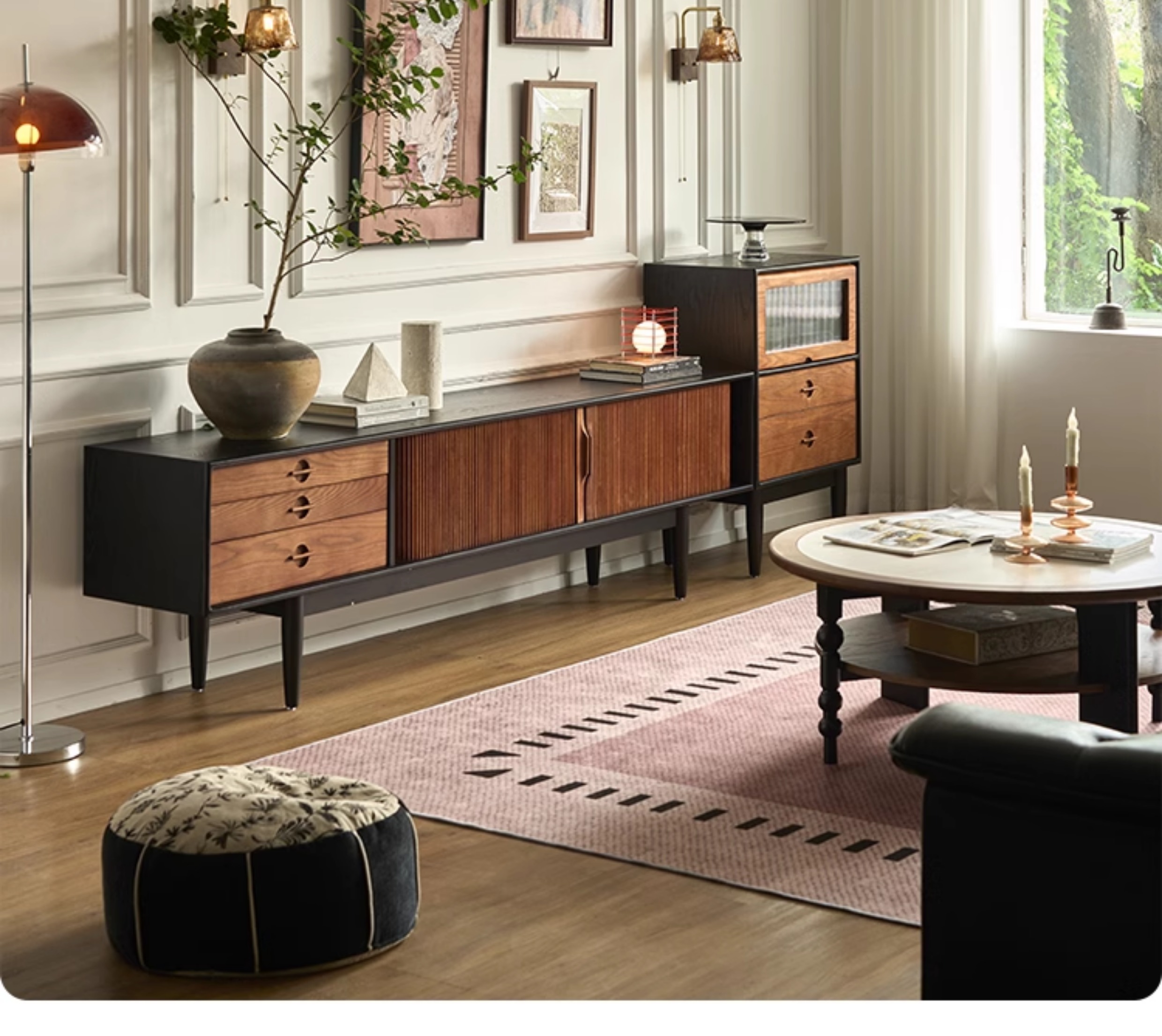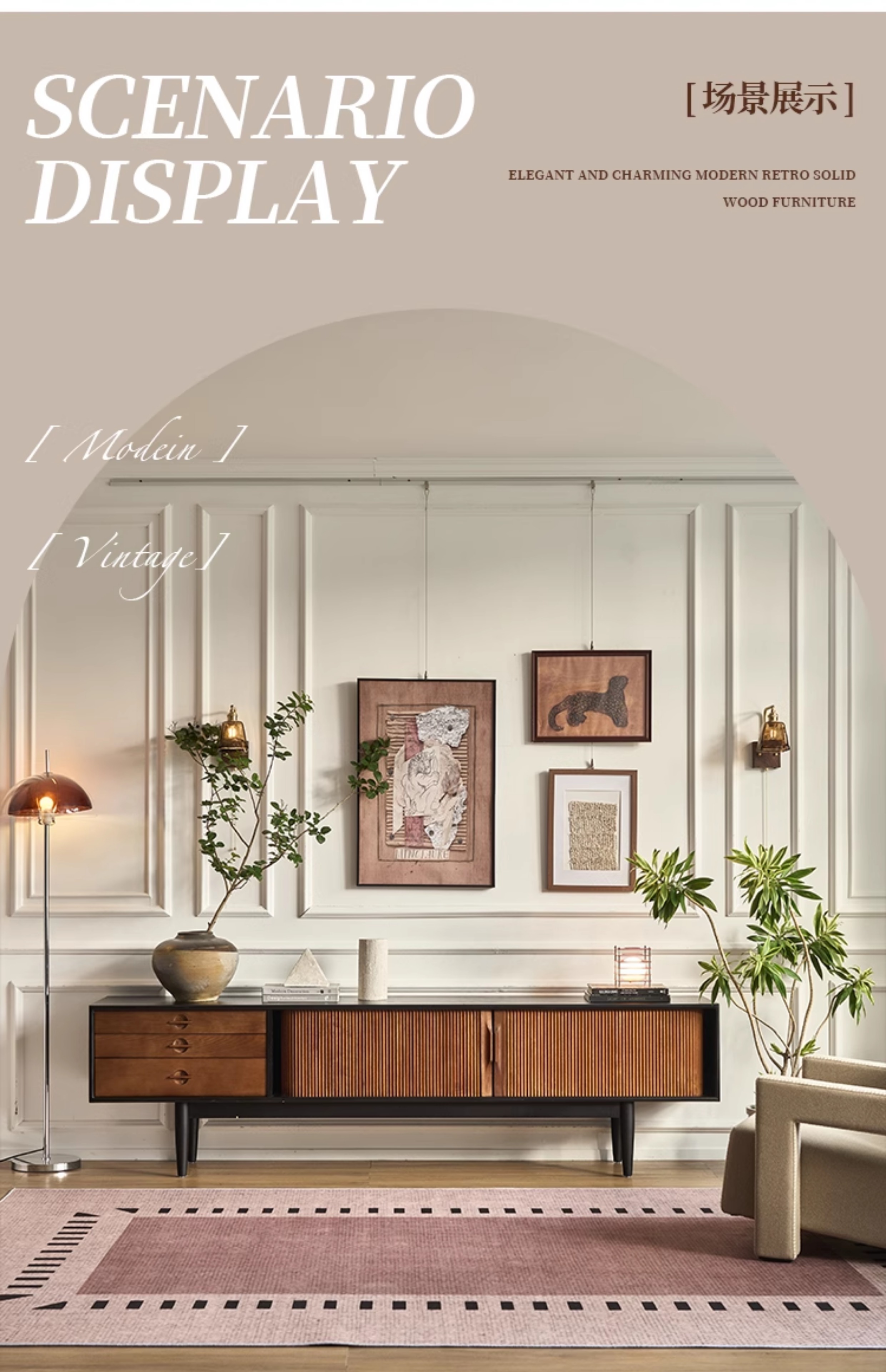 French style antique black TV cabinet covered with antique solid wood, small-sized household storage cabinet, bucket cabinet, high-end TV cabinet