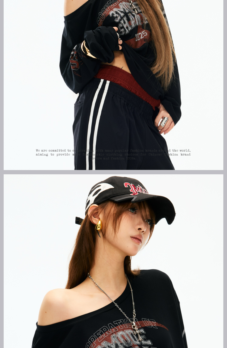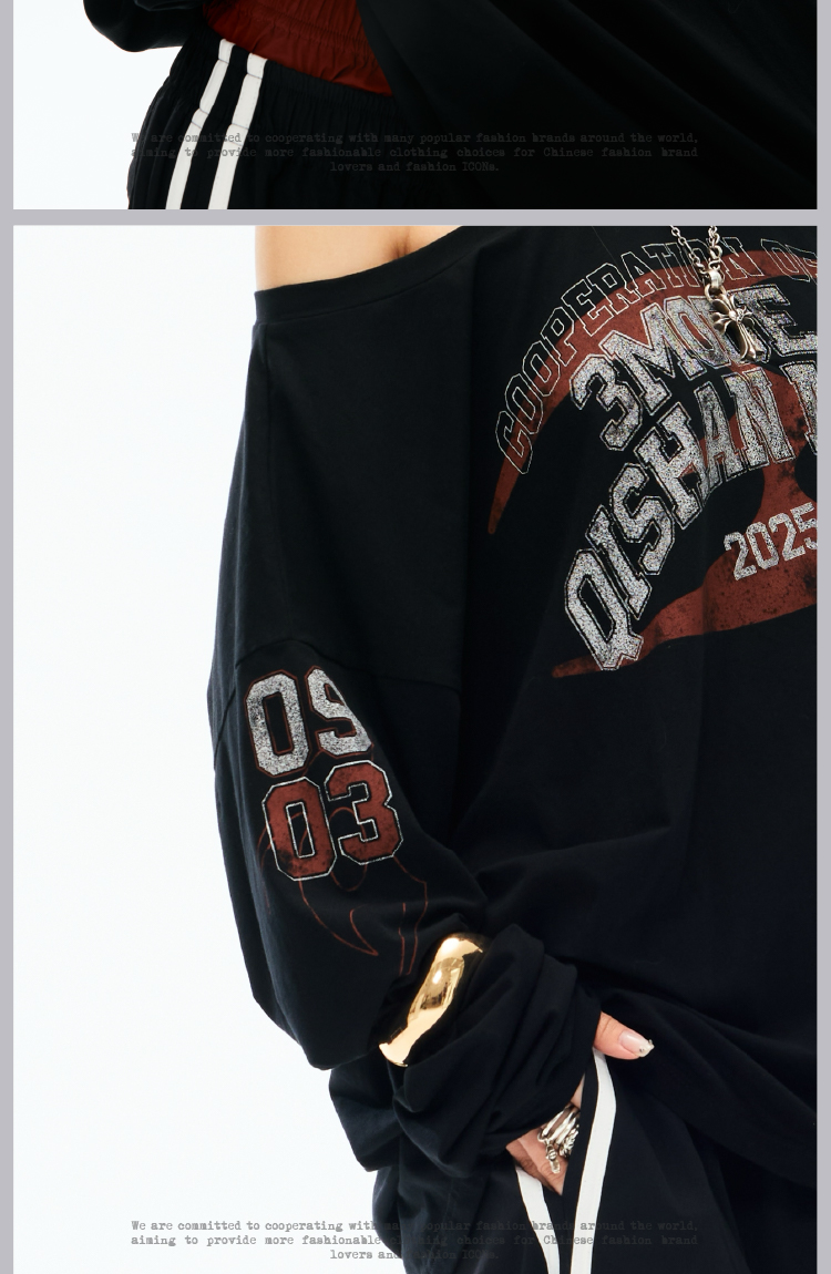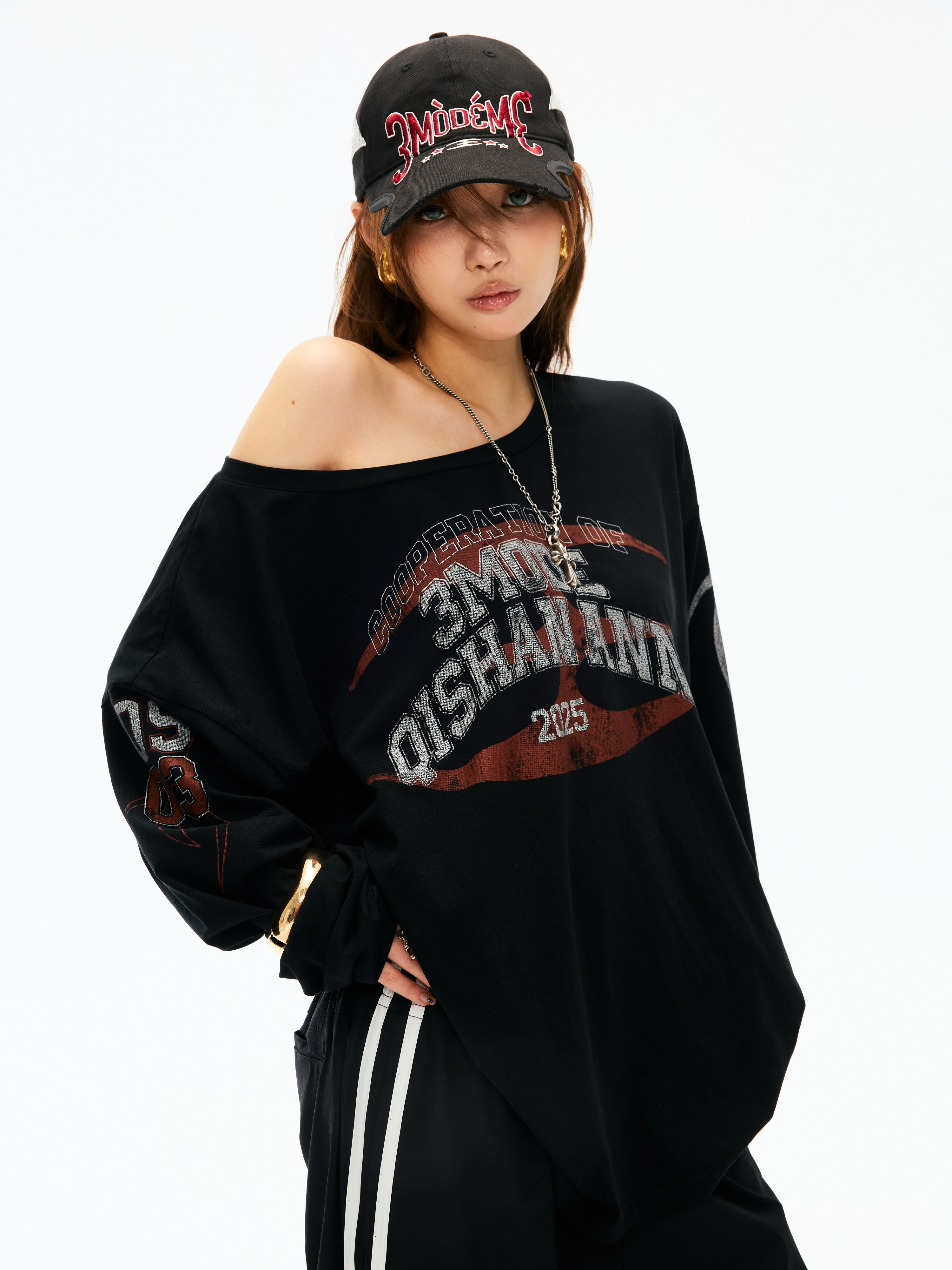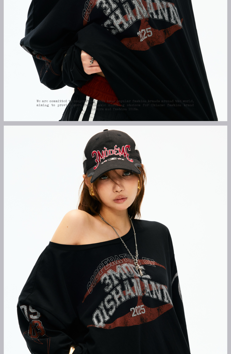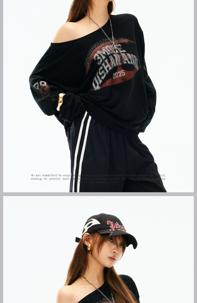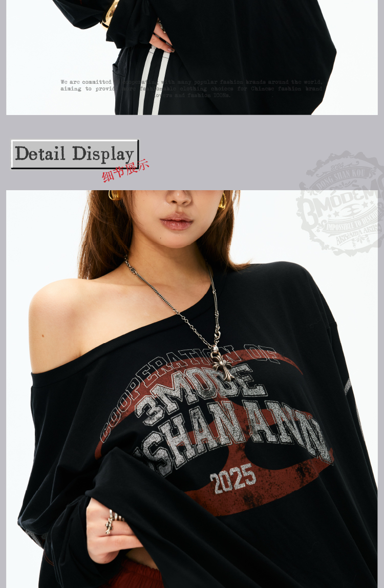 Qishan Ming Chestnut Co branded 3MODE 2025 Summer New American style Hot Girl Long Sleeve T-shirt for Women