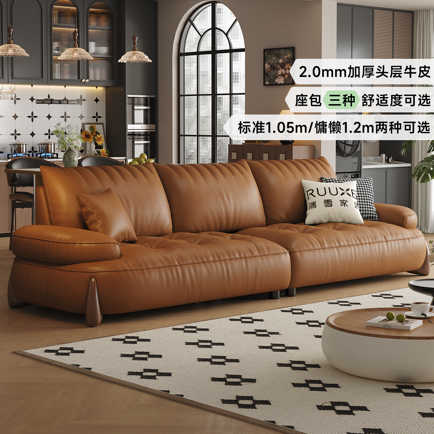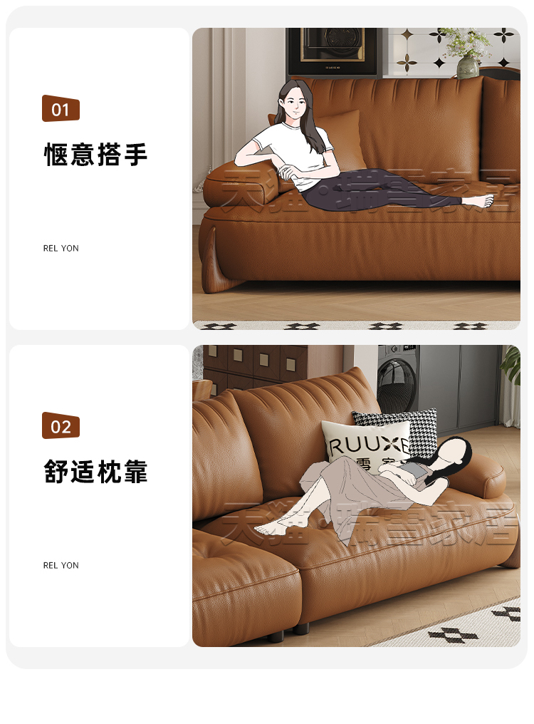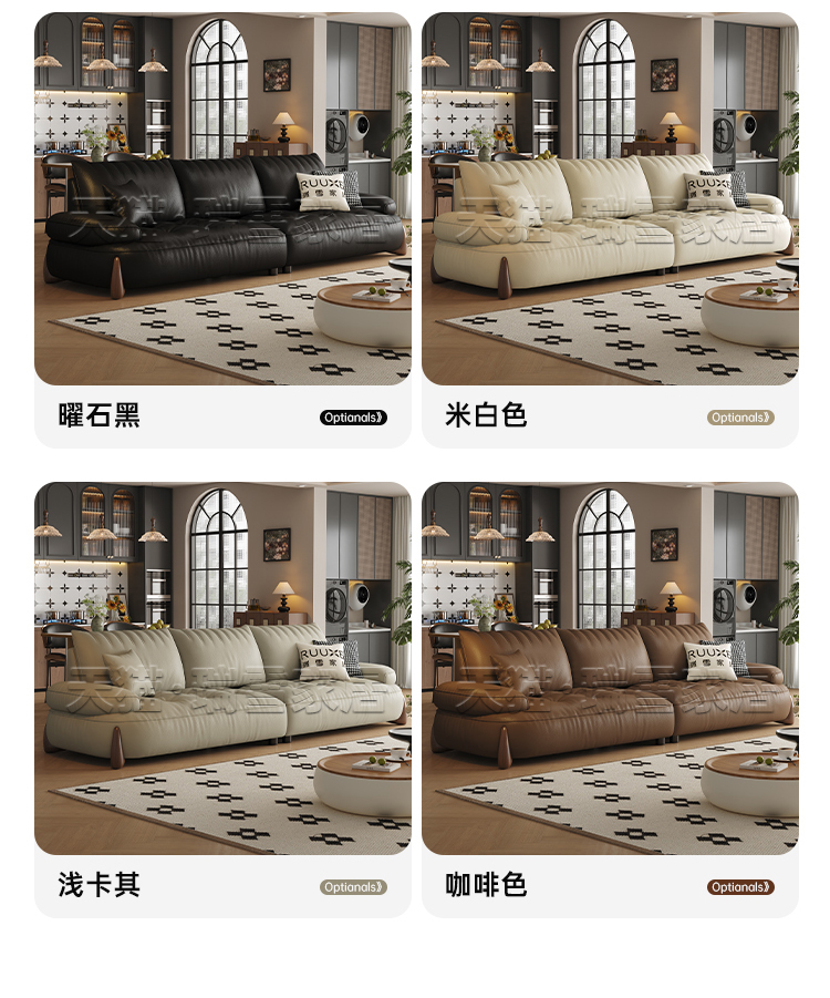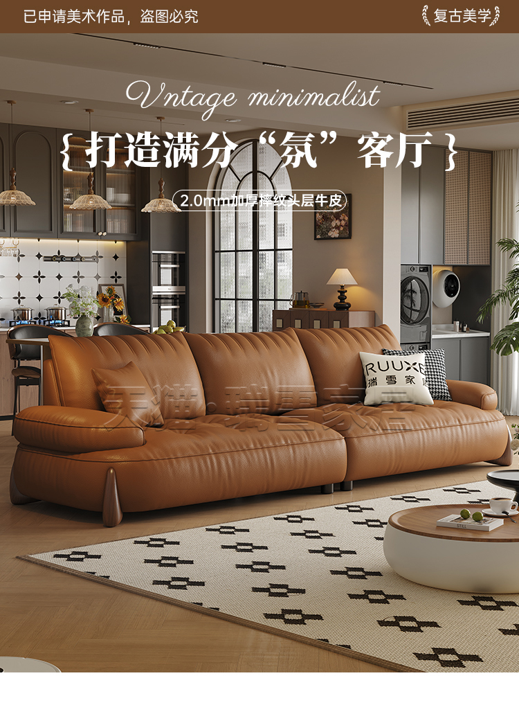 Ruixue Little Meow Beast Sofa with Ancient Style, First Layer Leather, Small House, Widened Large Seating, Deep Black Walnut Wood, Genuine Leather Sofa