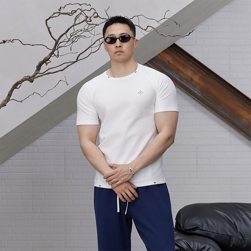 Basic Unit Basic Unit Mesh Breathable Elastic Tight Sports T-shirt Men's Fitness Clothes Show Big