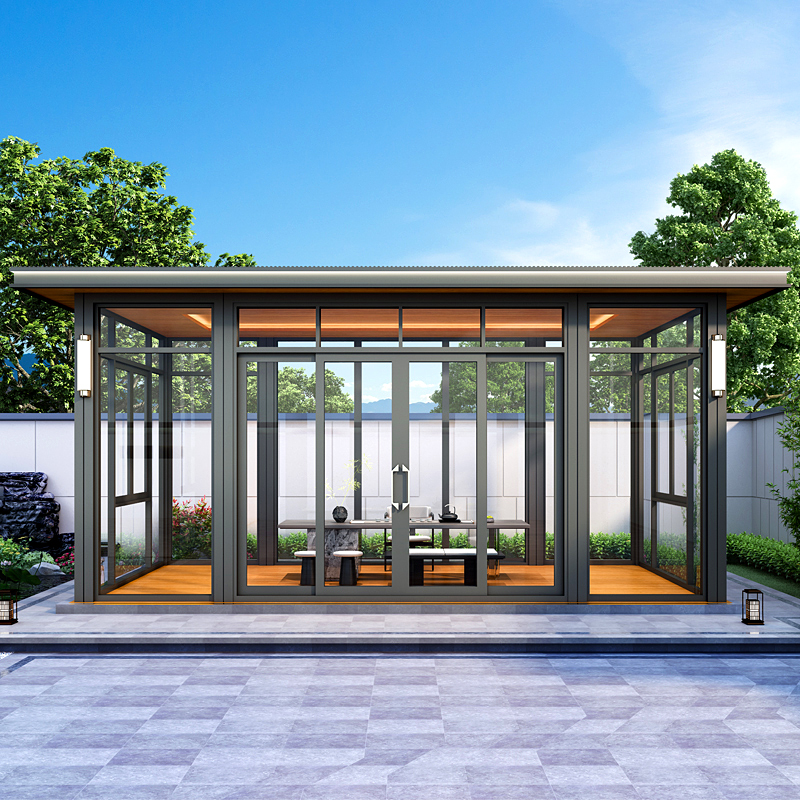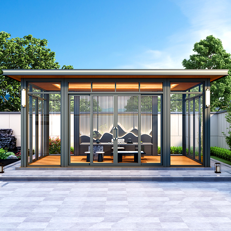 Aluminum alloy tea room greenhouse aluminum art pavilion new Chinese style villa modern courtyard outdoor garden glass room customization