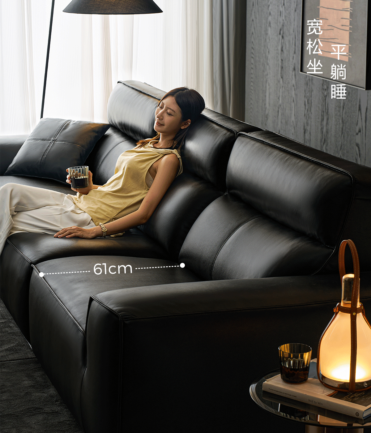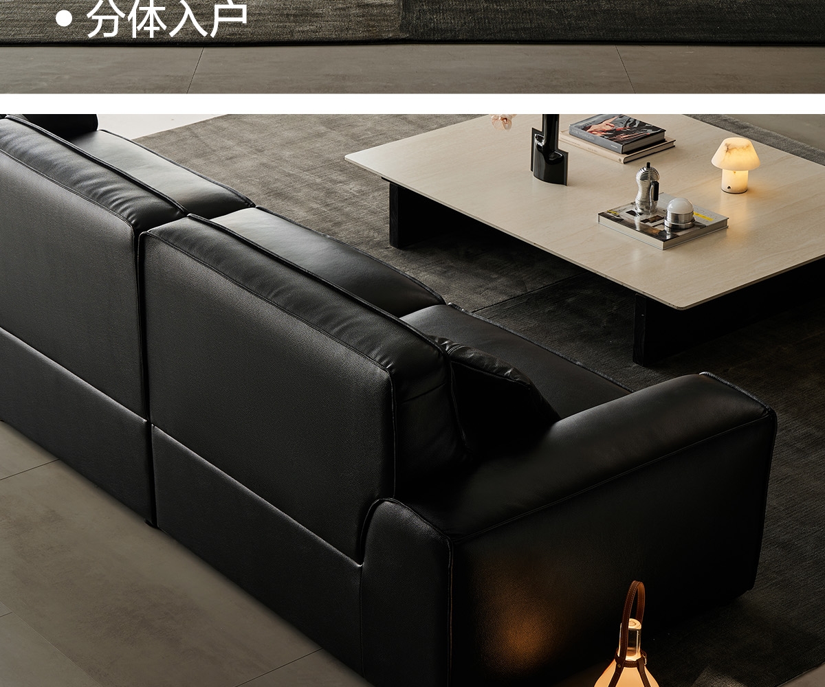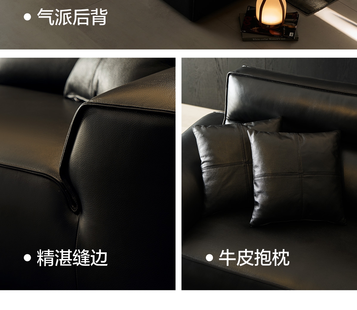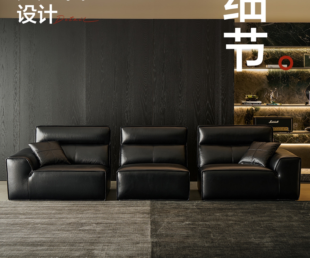 Lin's Home High Back Big Black Bull Leather Sofa Living Room 2025 New Black Straight Row Foshan Furniture Wood Industry