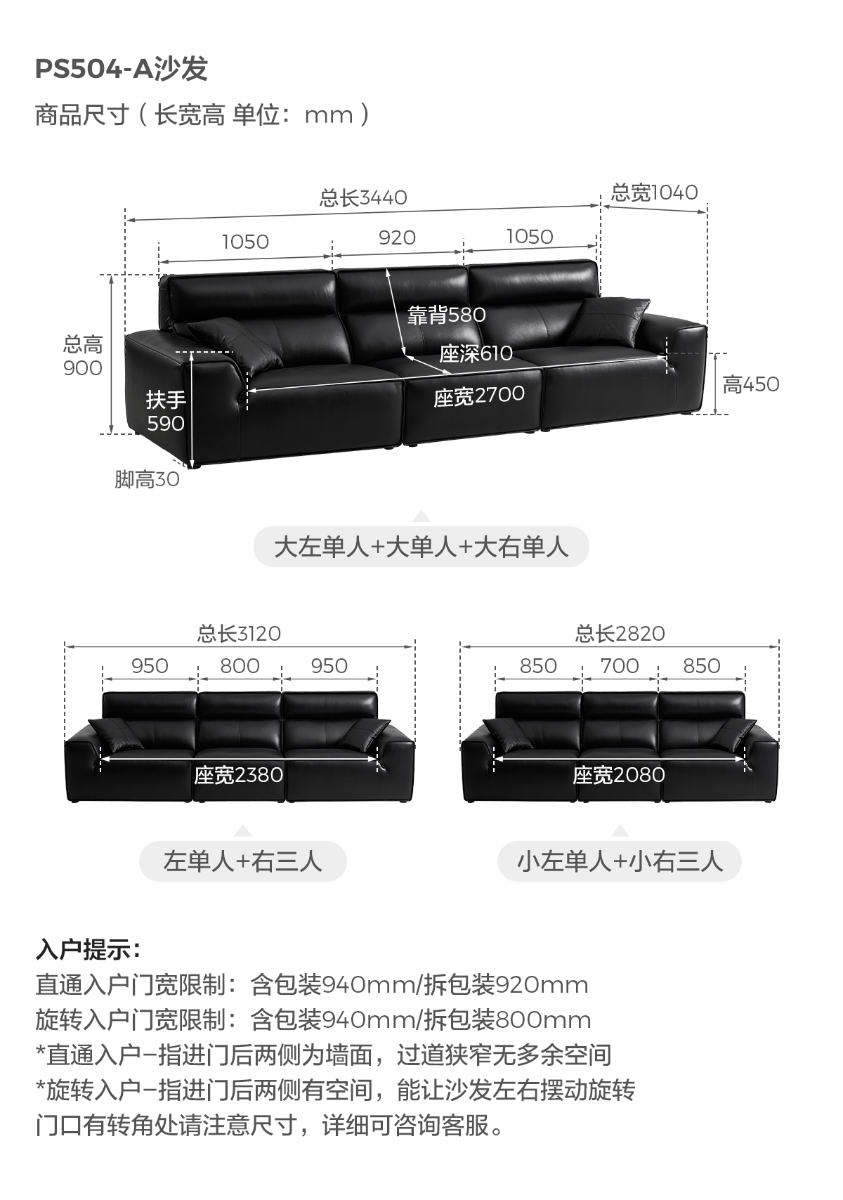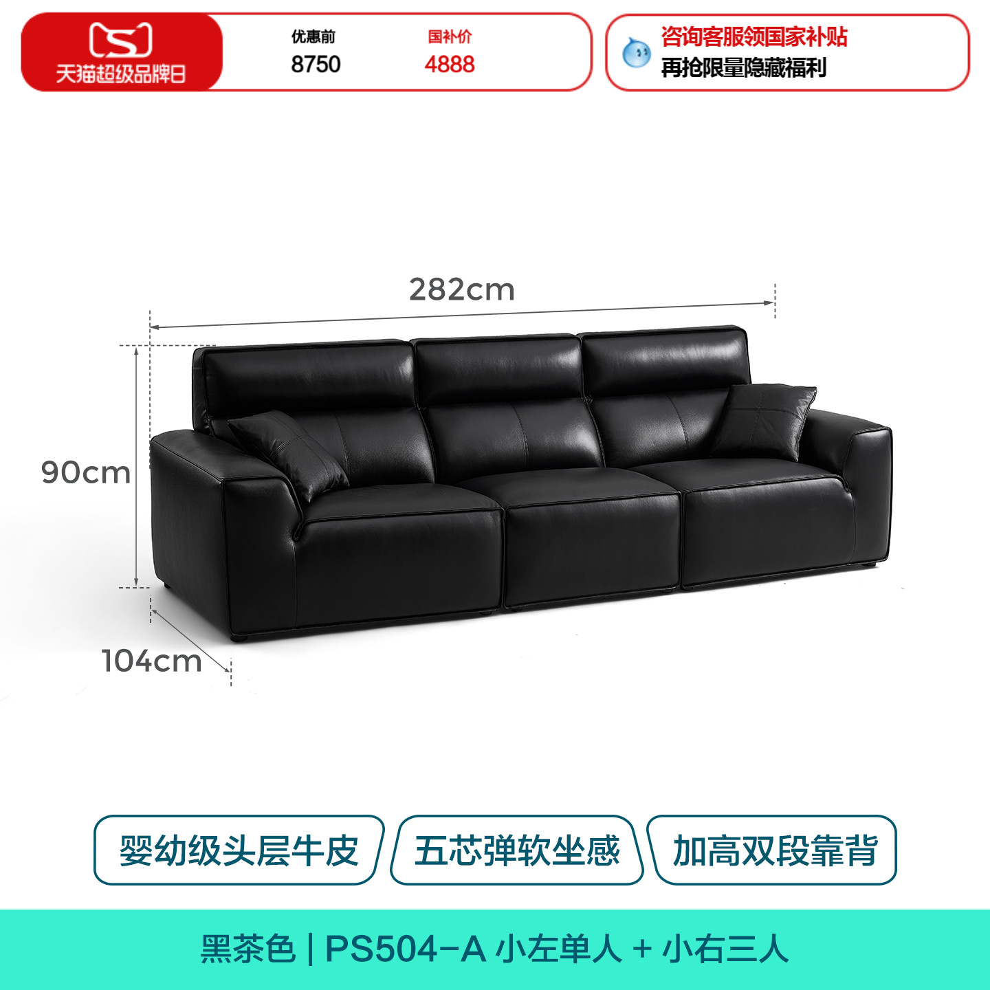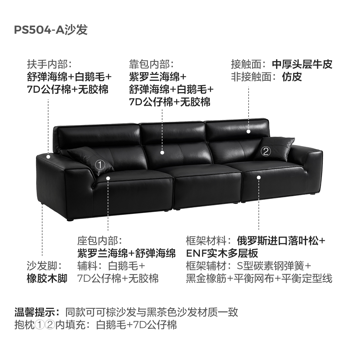 Lin's Home High Back Big Black Bull Leather Sofa Living Room 2025 New Black Straight Row Foshan Furniture Wood Industry