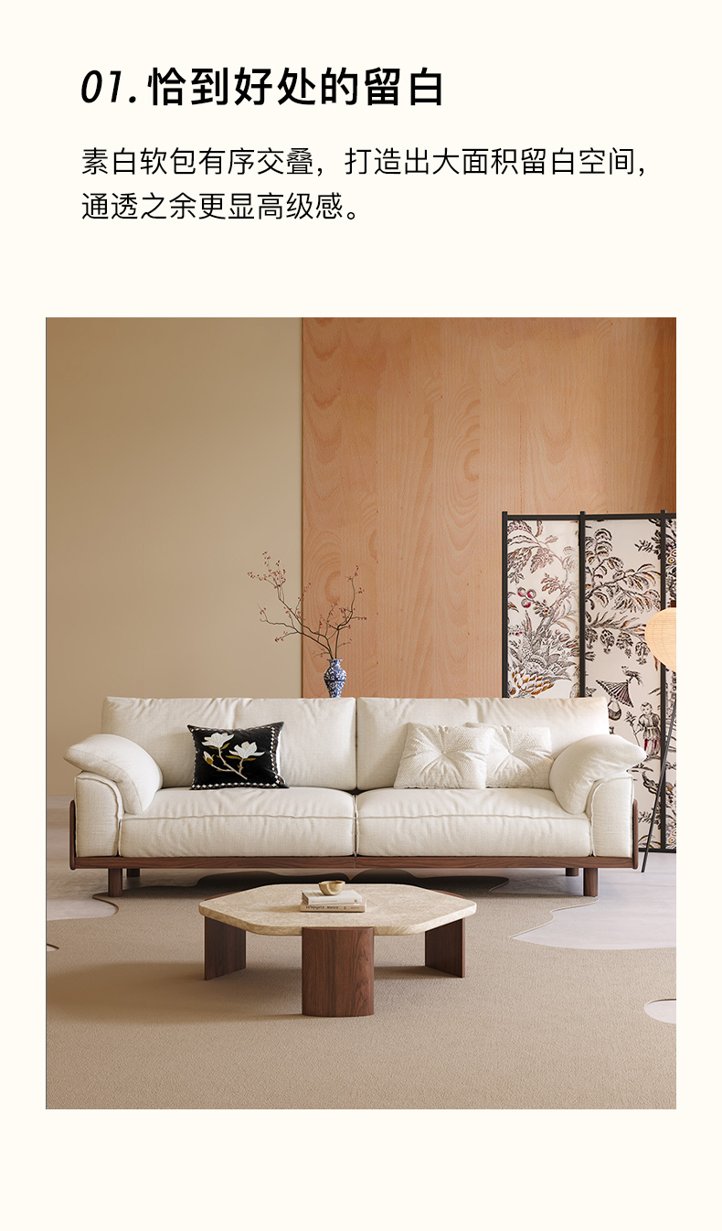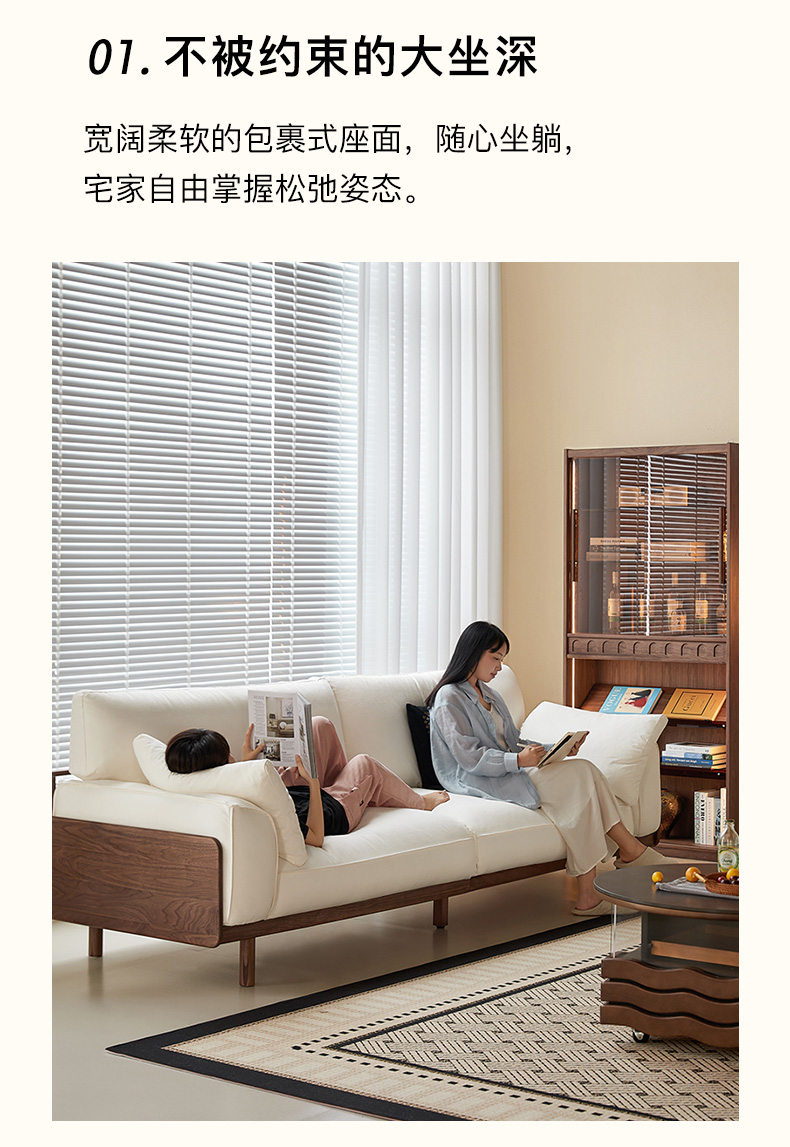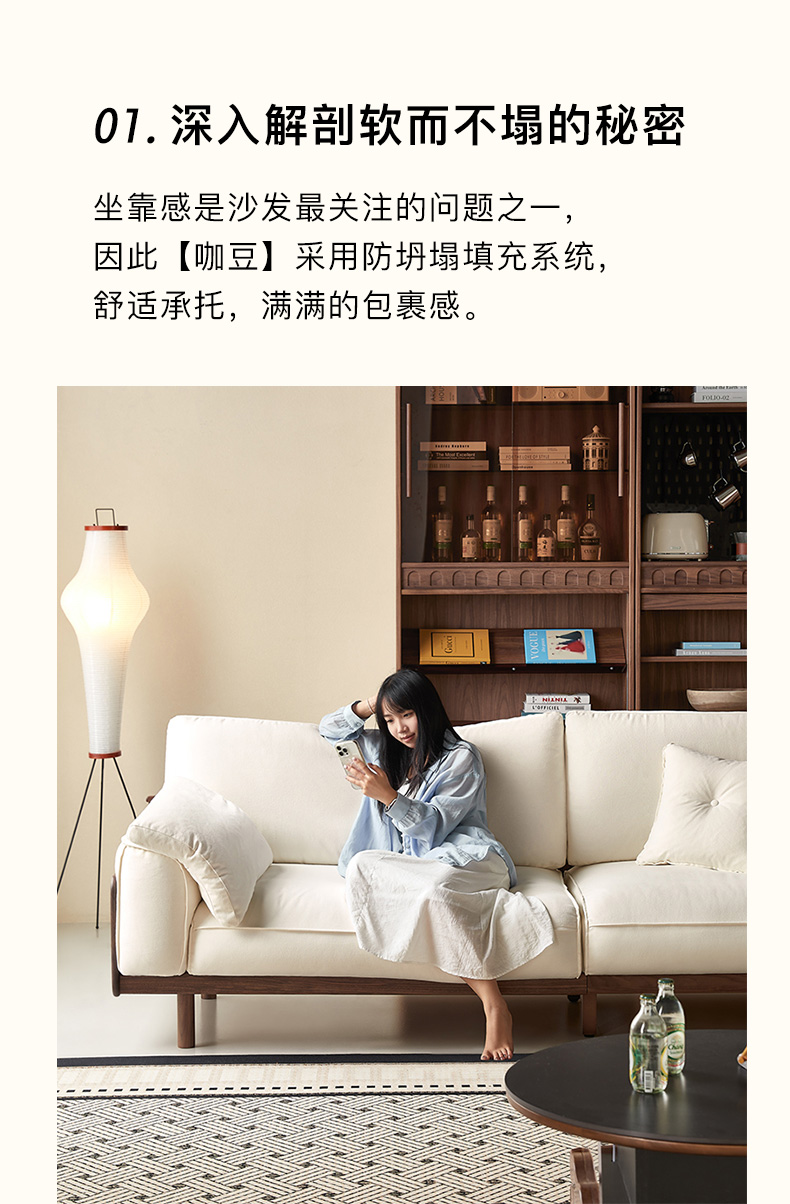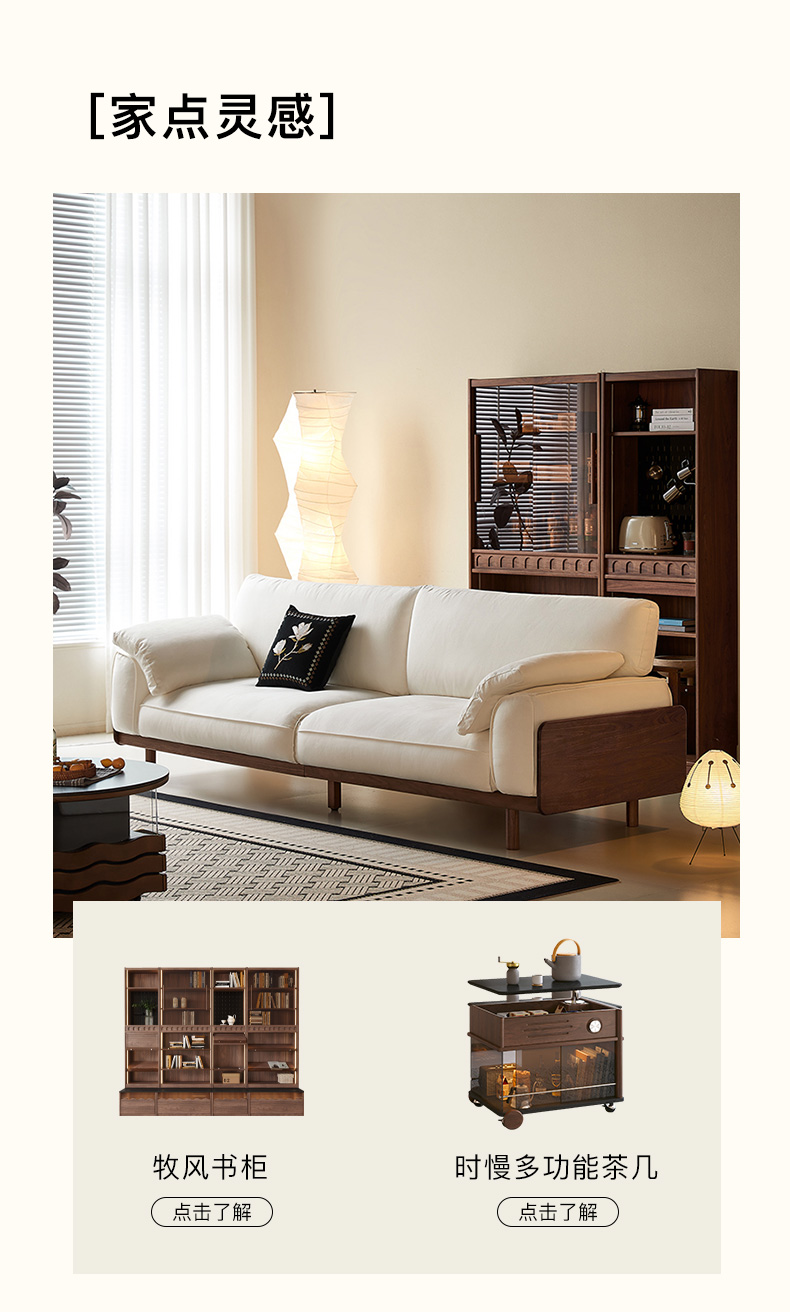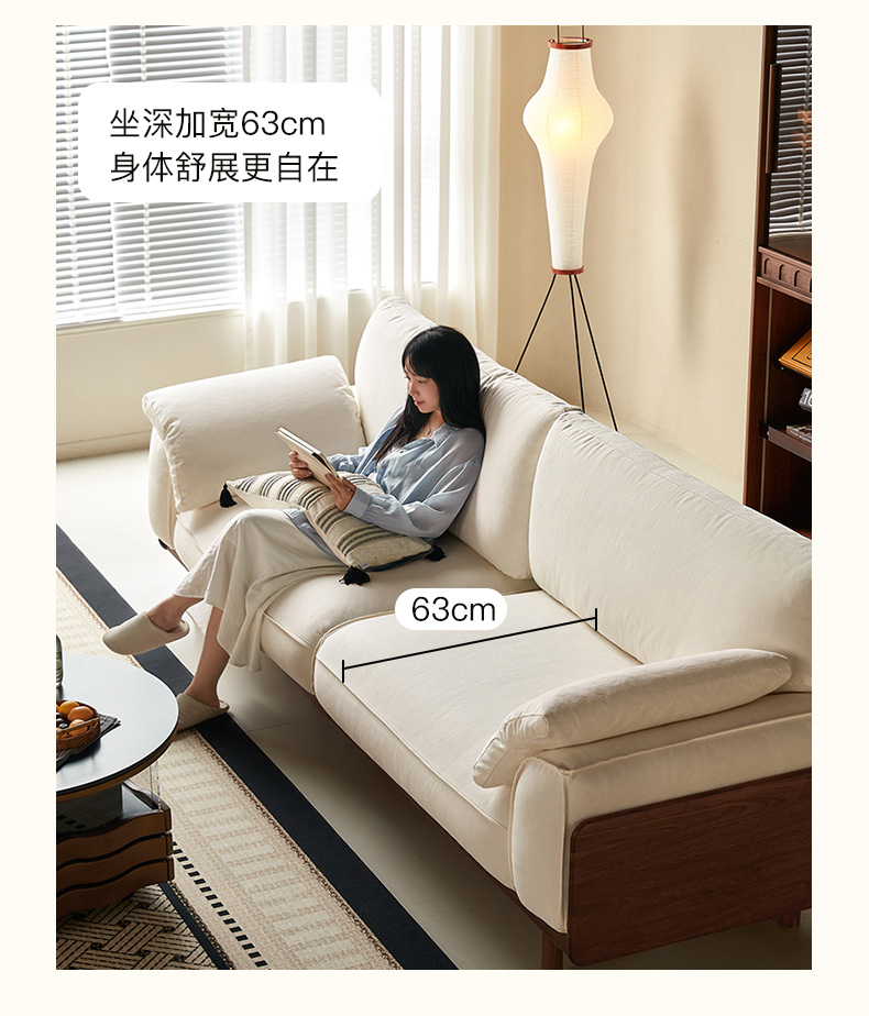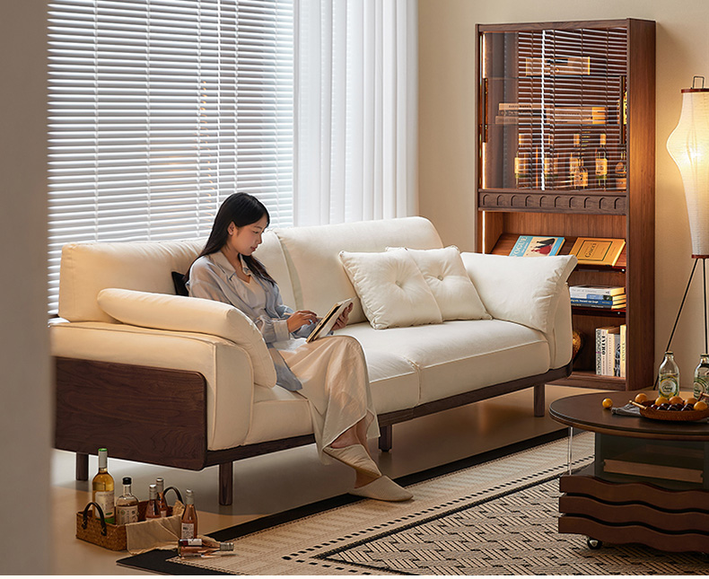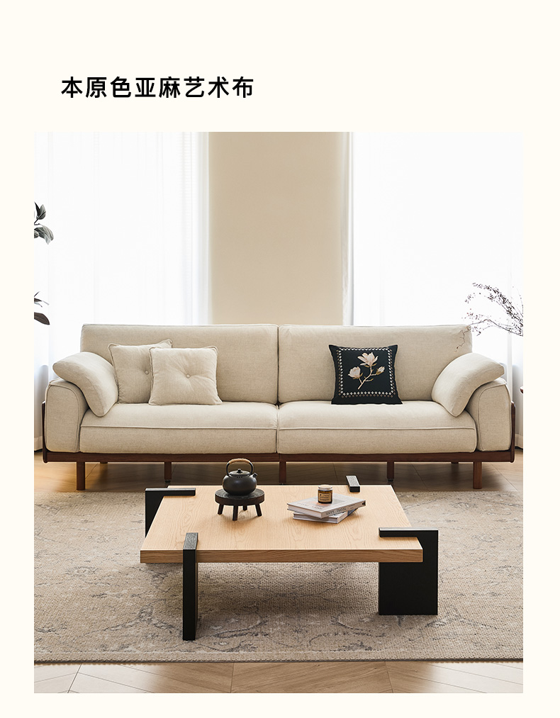 Modified Life Coffee Bean Sofa Black Walnut Solid Wood Living Room Linen Simple Modern 2025 New Fabric Sofa