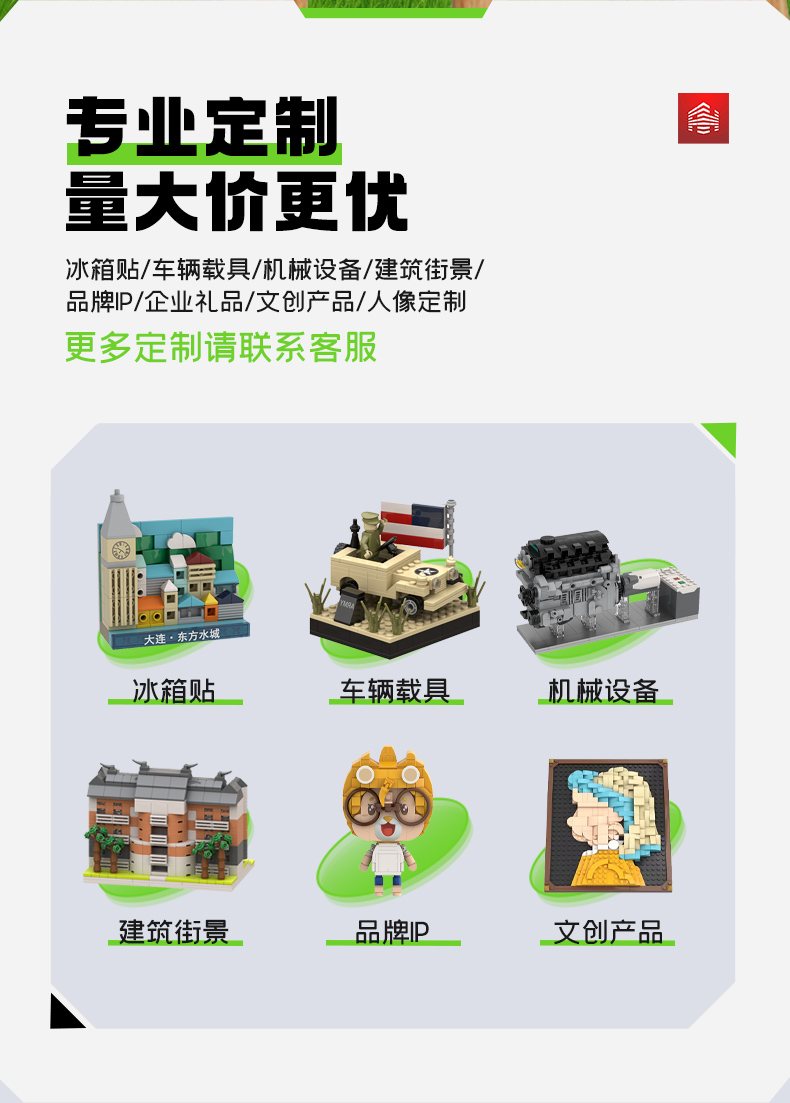 Customized Building Blocks, Assembly Models, Portraits of People, Enterprise IP Scenarios, MOC Microparticle Dolls, DIY Handicrafts, Customized Based on Pictures