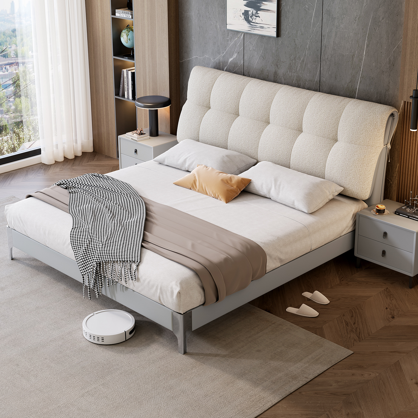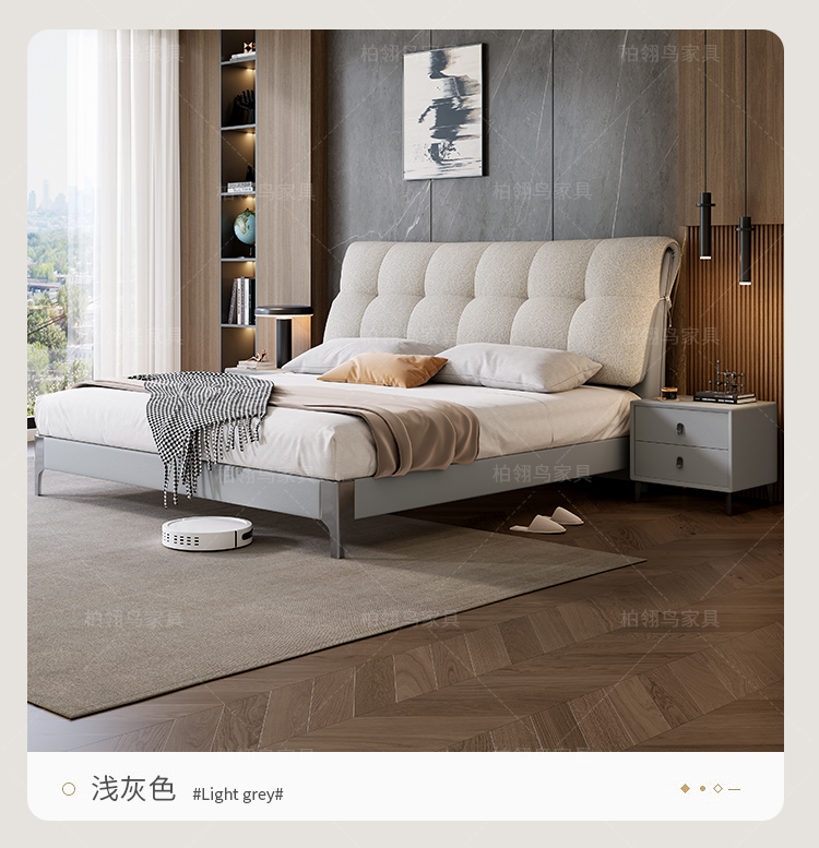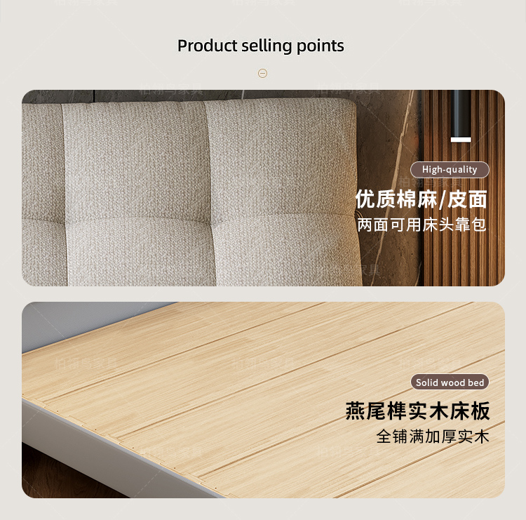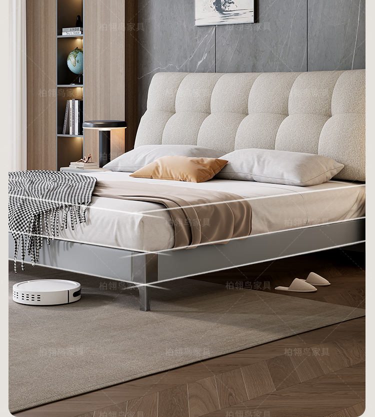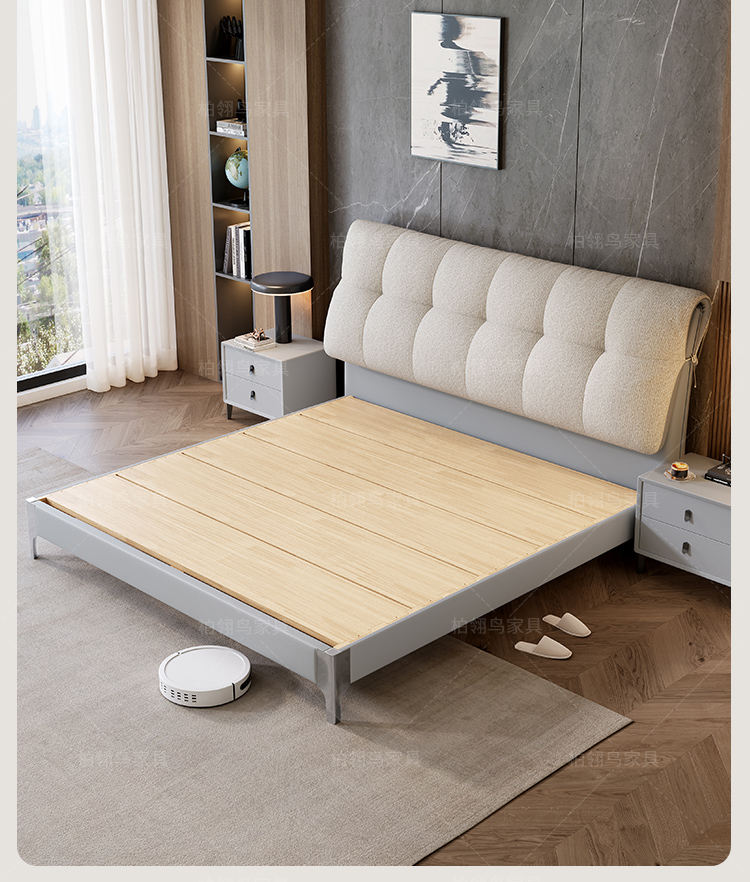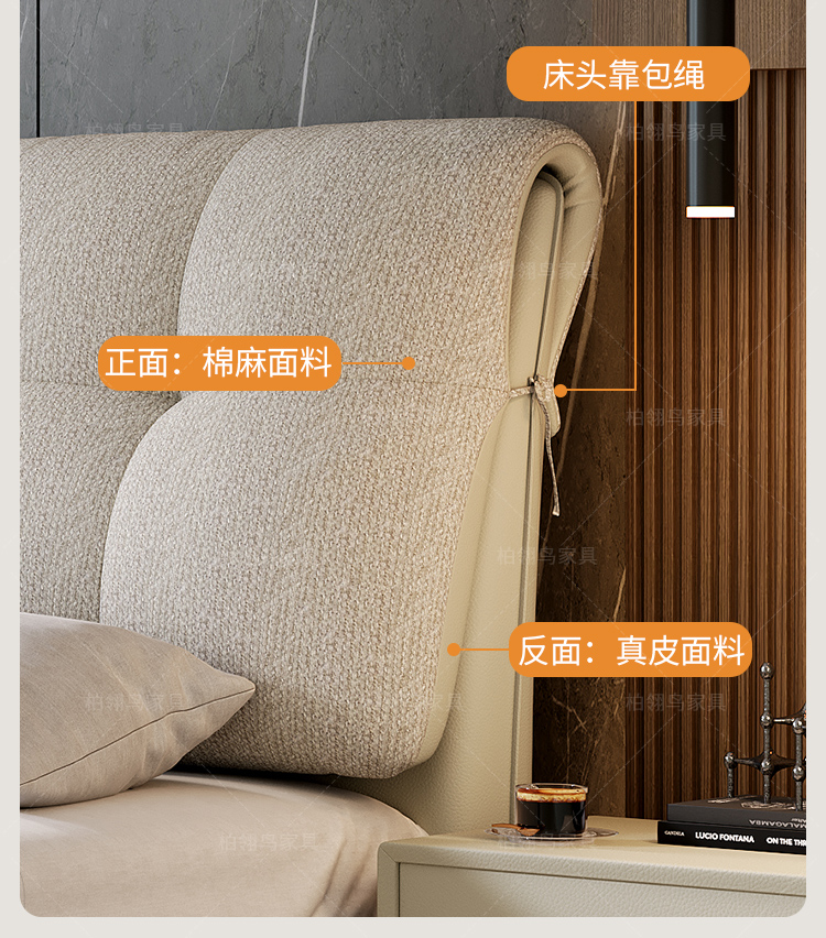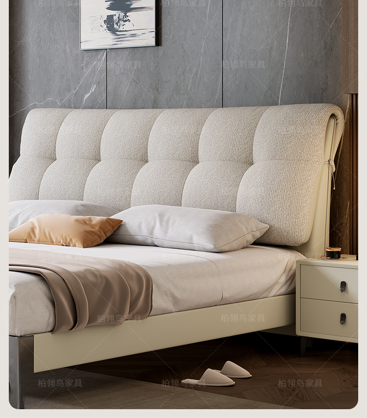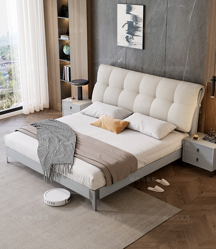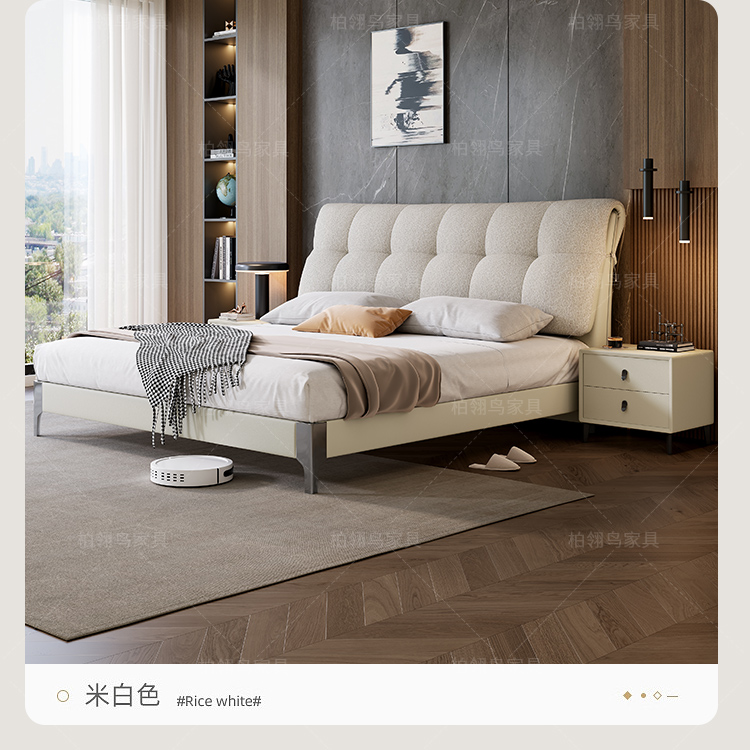 2025 new leather cloth double-sided back bag leather bed, modern and simple bedroom soft bag bed, 1.8-meter double wedding bed