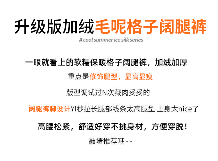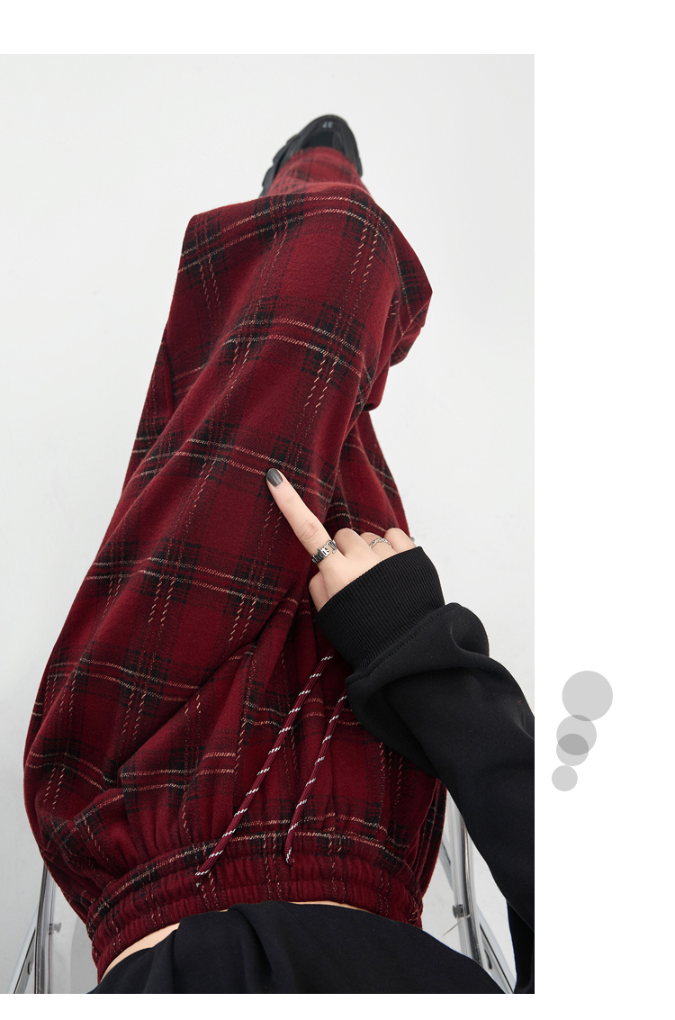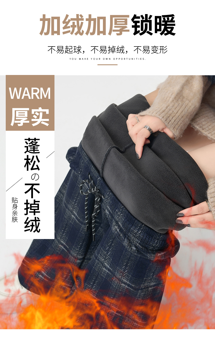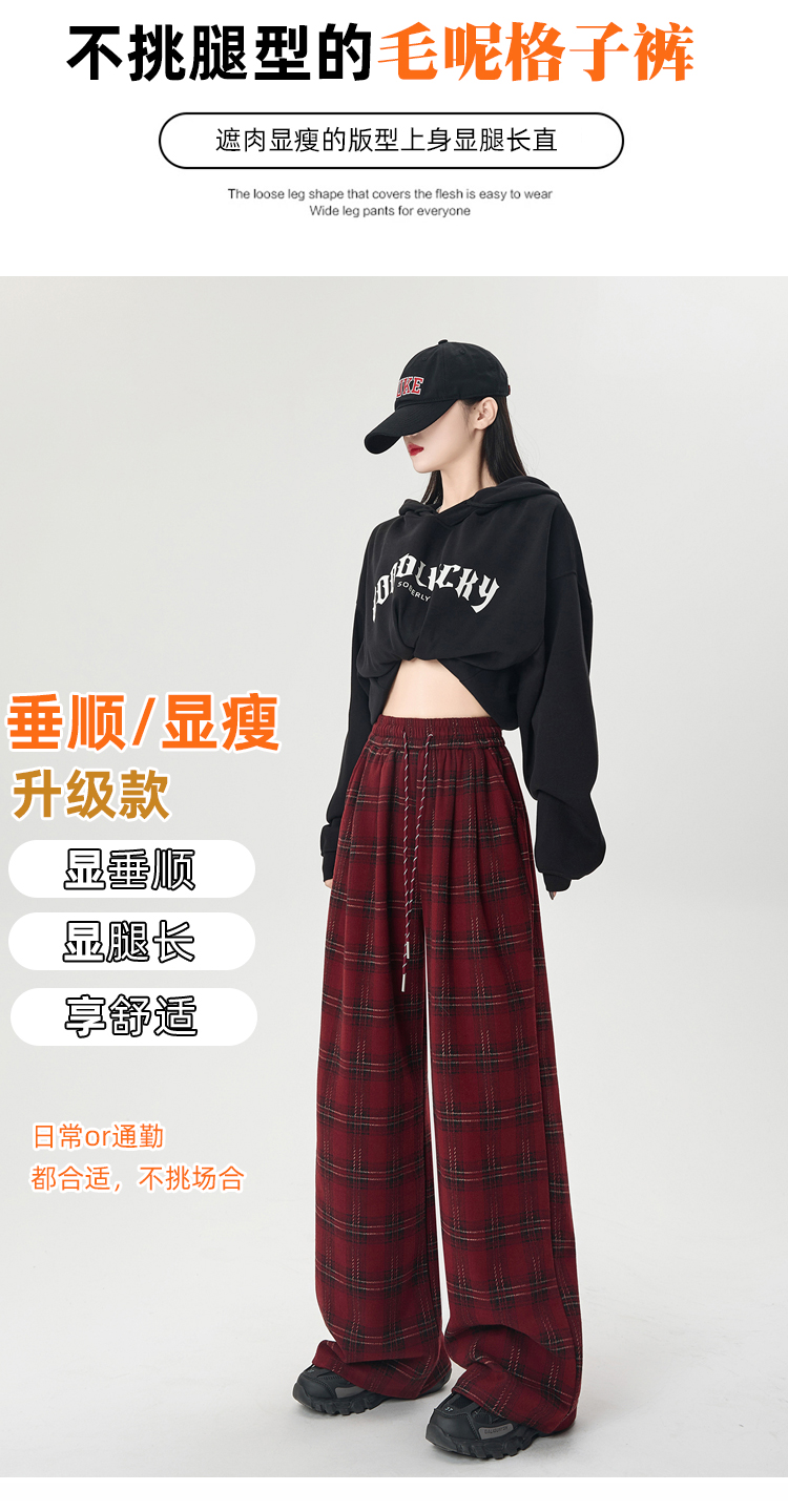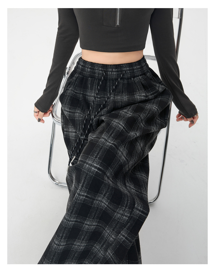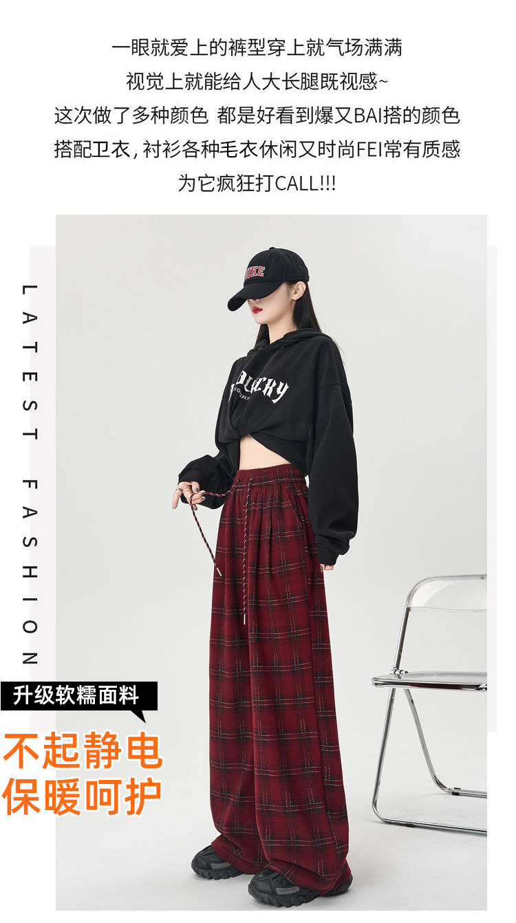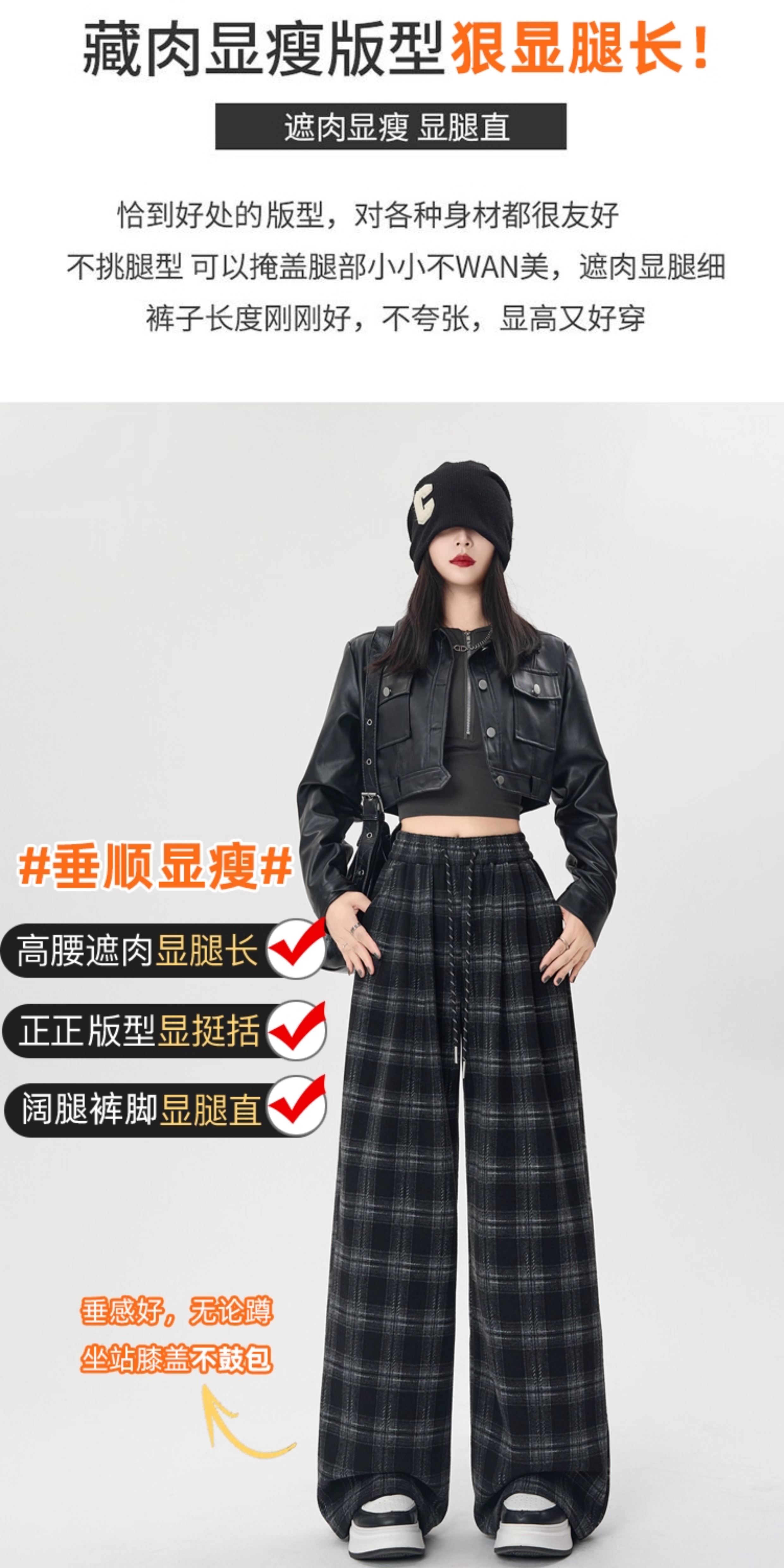 La Chapelle Velvet Thickened Checkered Casual Pants for Women Autumn/Winter 2025 New Short, High Waist, Hanging Wide Leg Pants