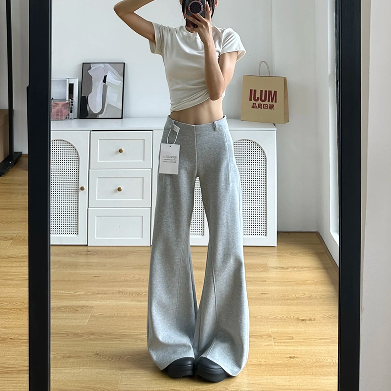 American gray micro flared women's 2025 autumn new sports and casual pants straight leg wide leg flared pants with a hanging feel