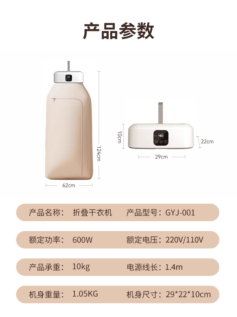 Japanese drying machines, dryers, household small foldable travel portable sterilization and disinfection clothes, energy-saving and fast drying